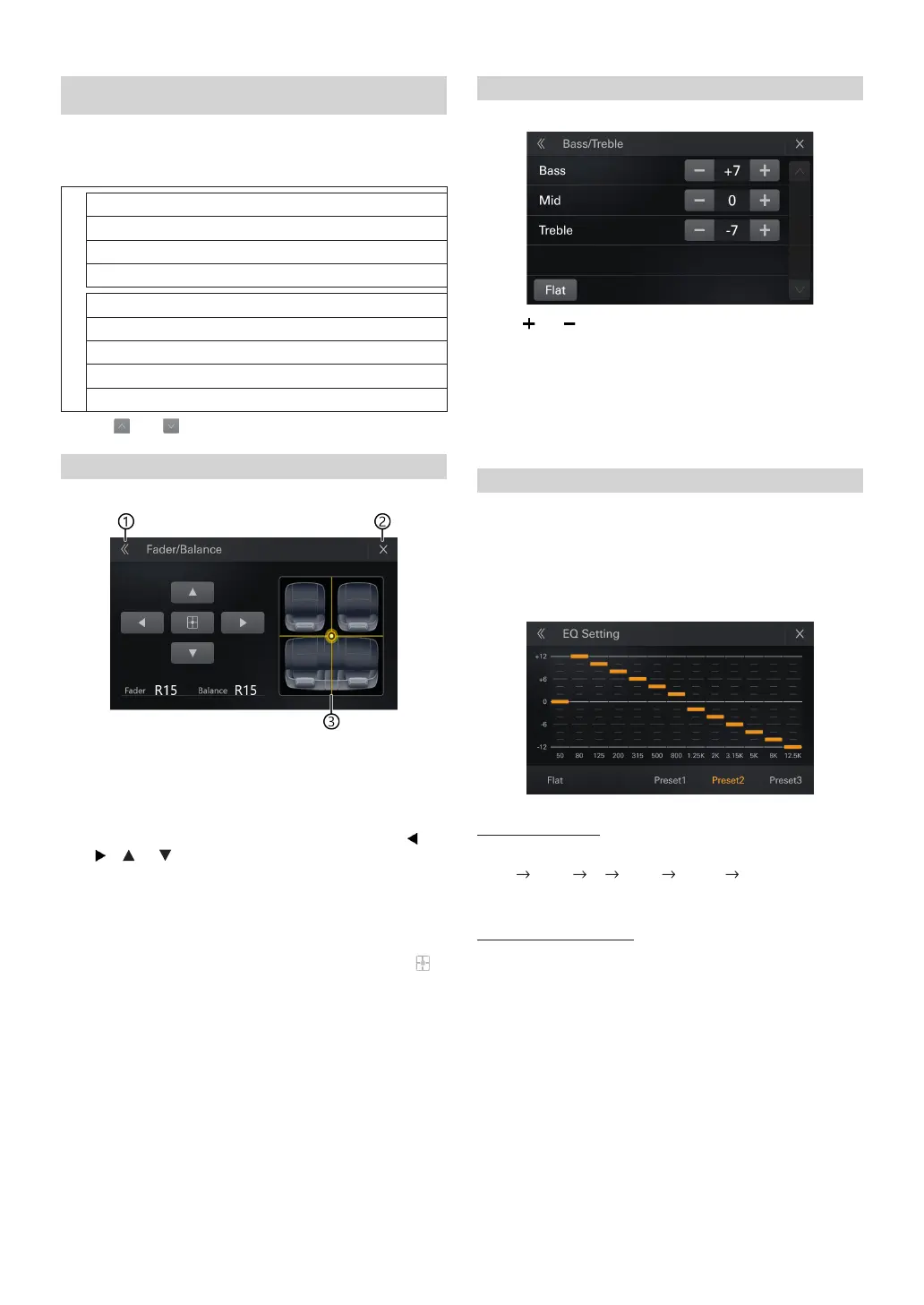 To reset the initial setting (Bass: 0, Middle: 0, Treble: 0), touch [Flat].