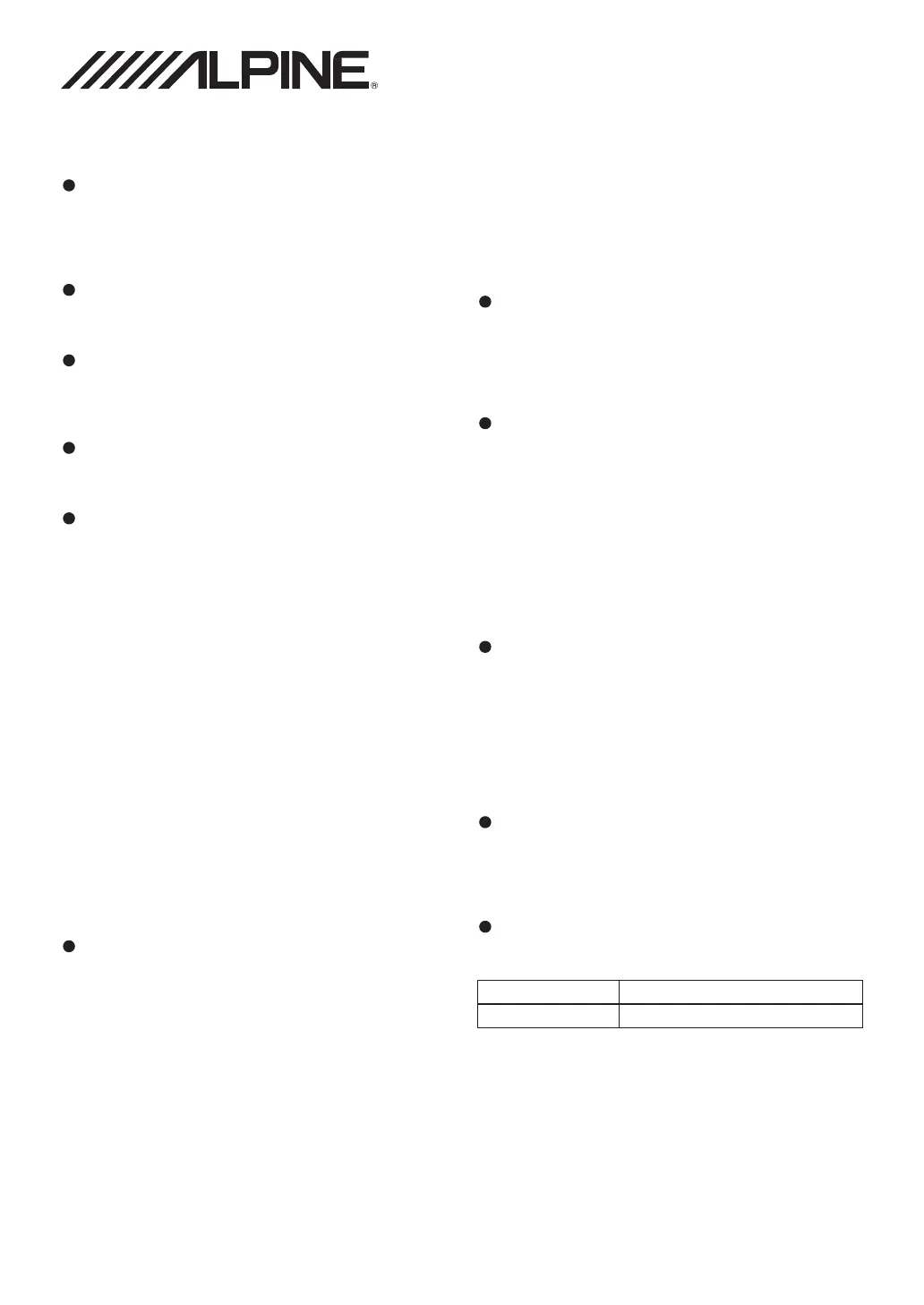 ALPINE ELECTRONICS OF AMERICA, INC. (“Alpine”), is dedicated to quality craftsmanship and is pleased to oer this Warranty. We suggest that you