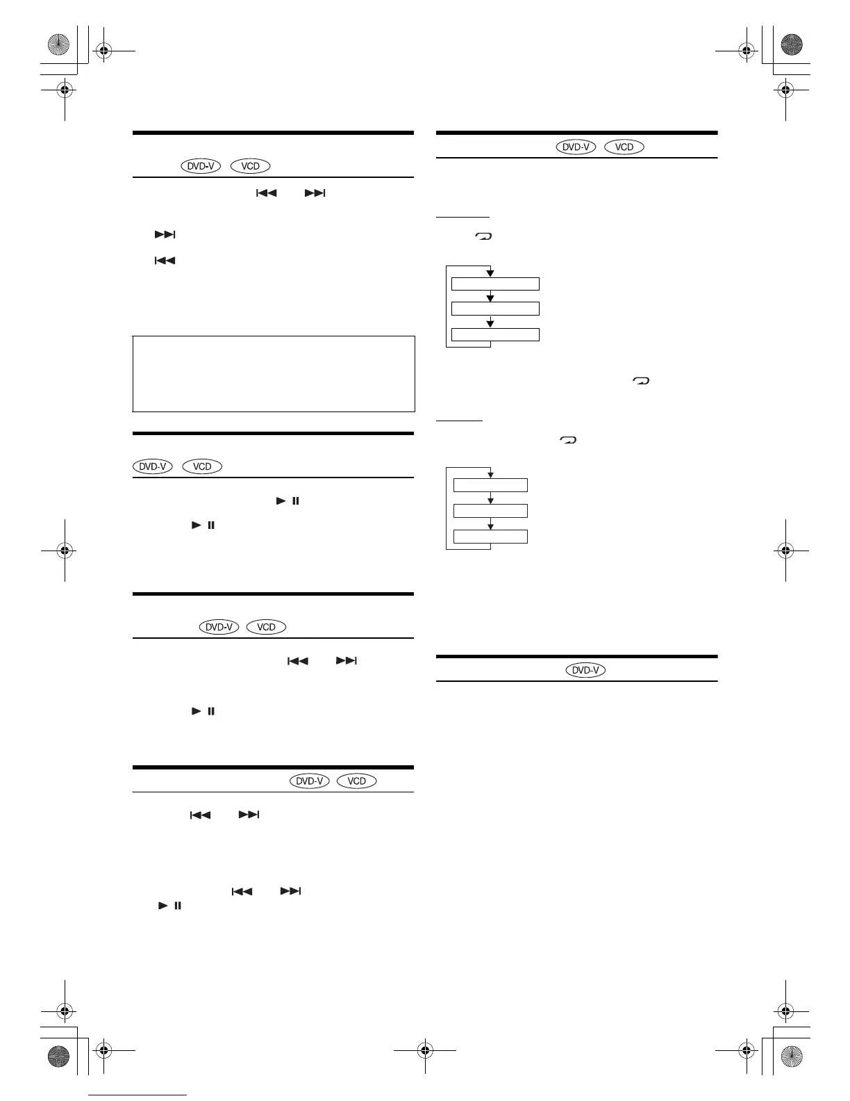 • Playback starts from the beginning of the chapter/track number in the