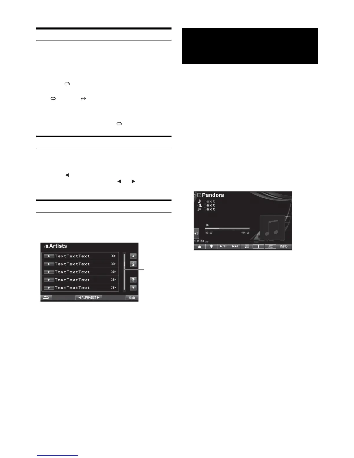 Display example for Pandora Radio screen