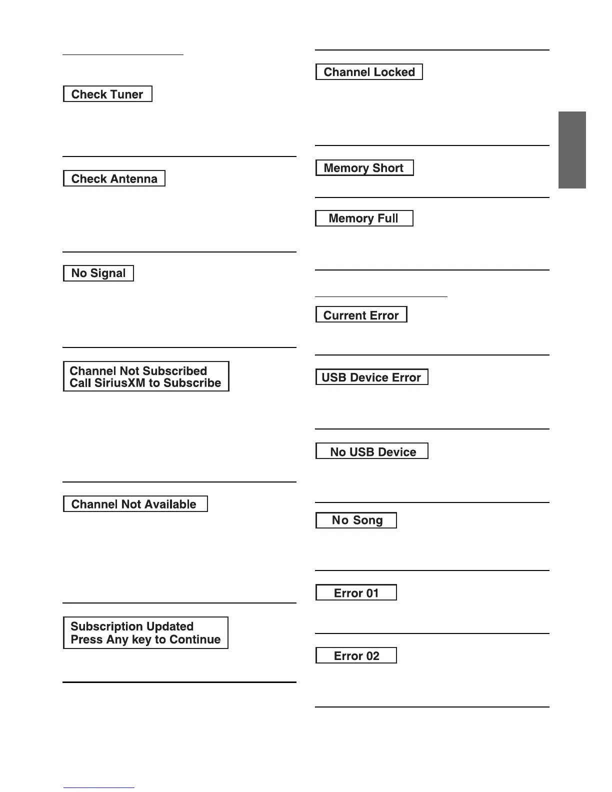 SiriusXM Advisory Messages