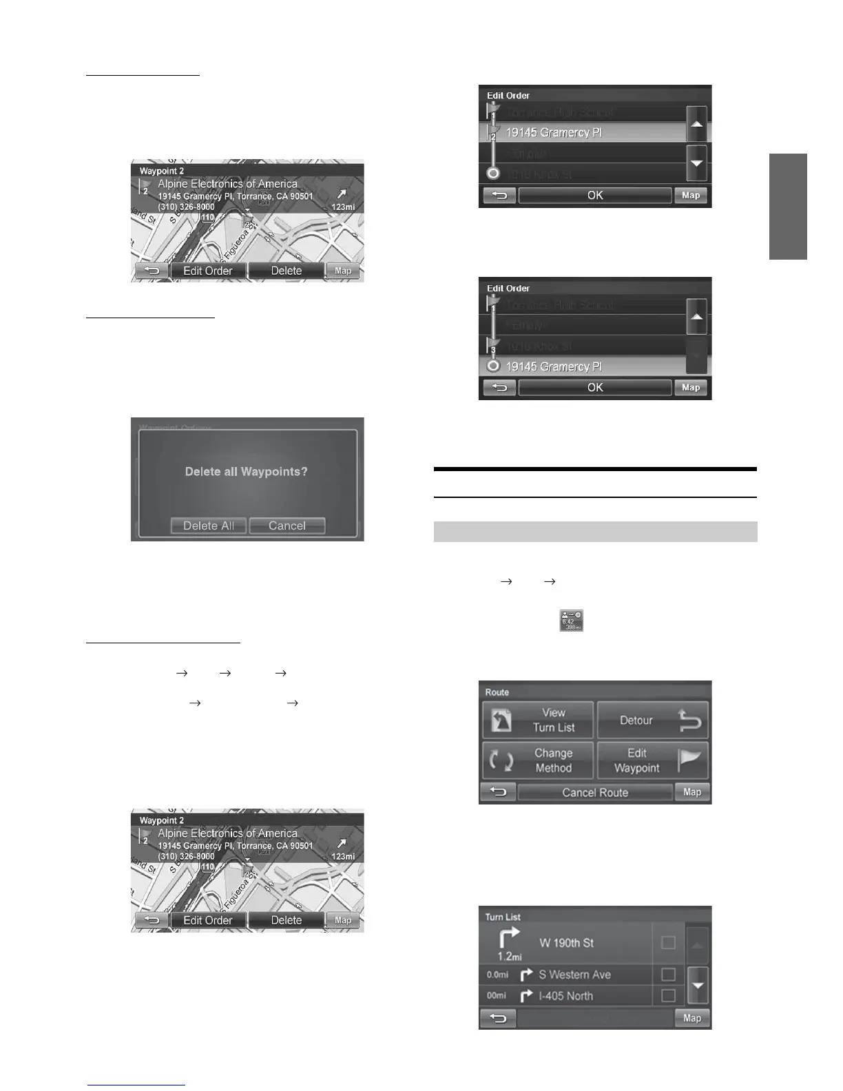 Touch [Delete All Waypoints]. Touch [Delete All]