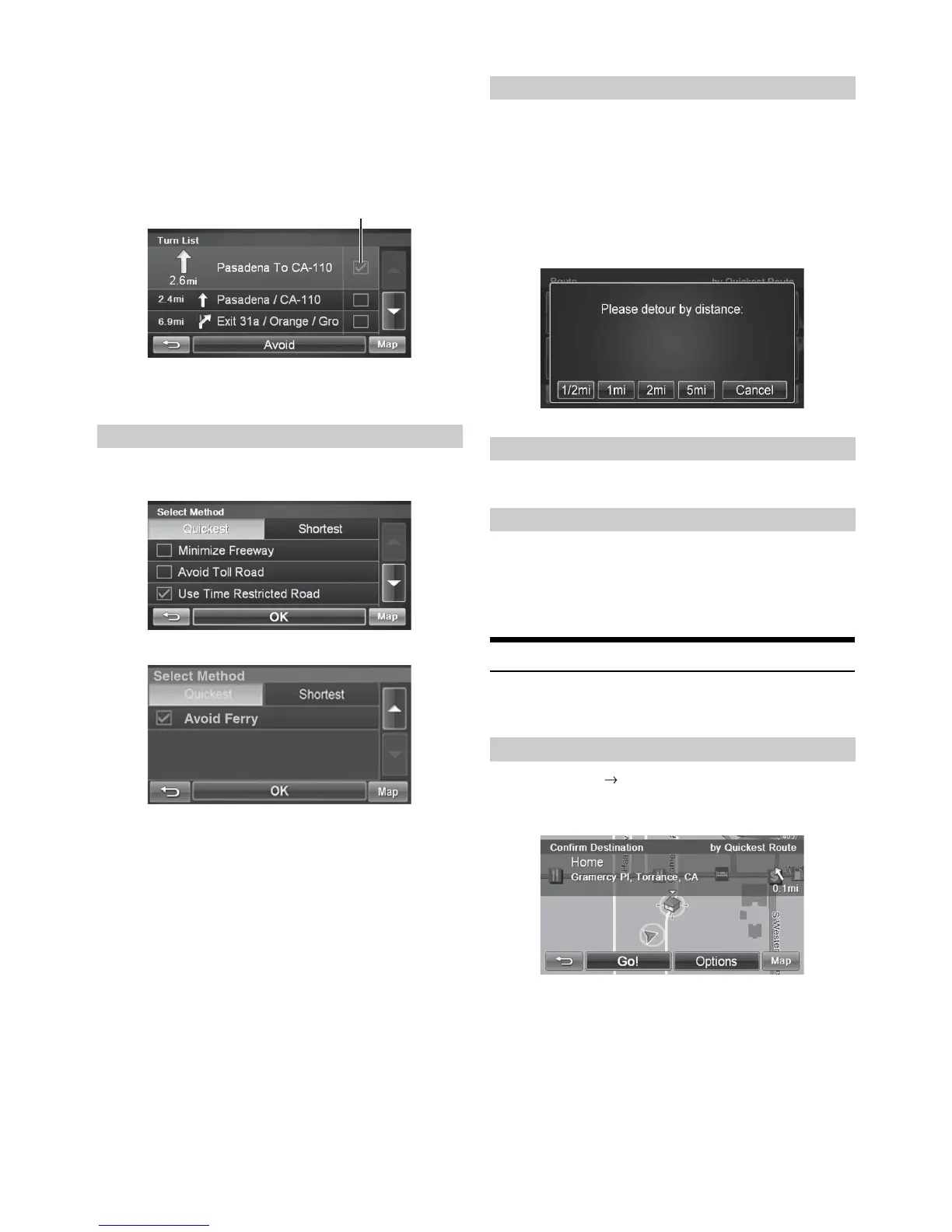 Choose detour from 1/2 mile, 1 mile, 2 miles or 5