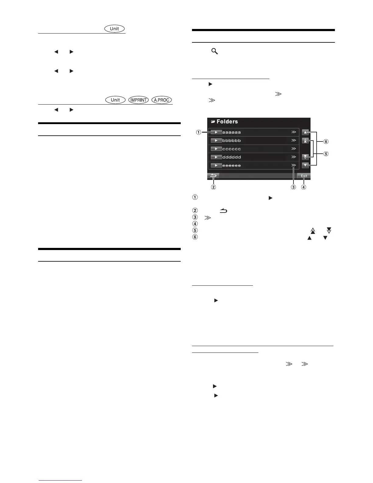 • A folder list is displayed only during MP3/WMA/AAC playback when
