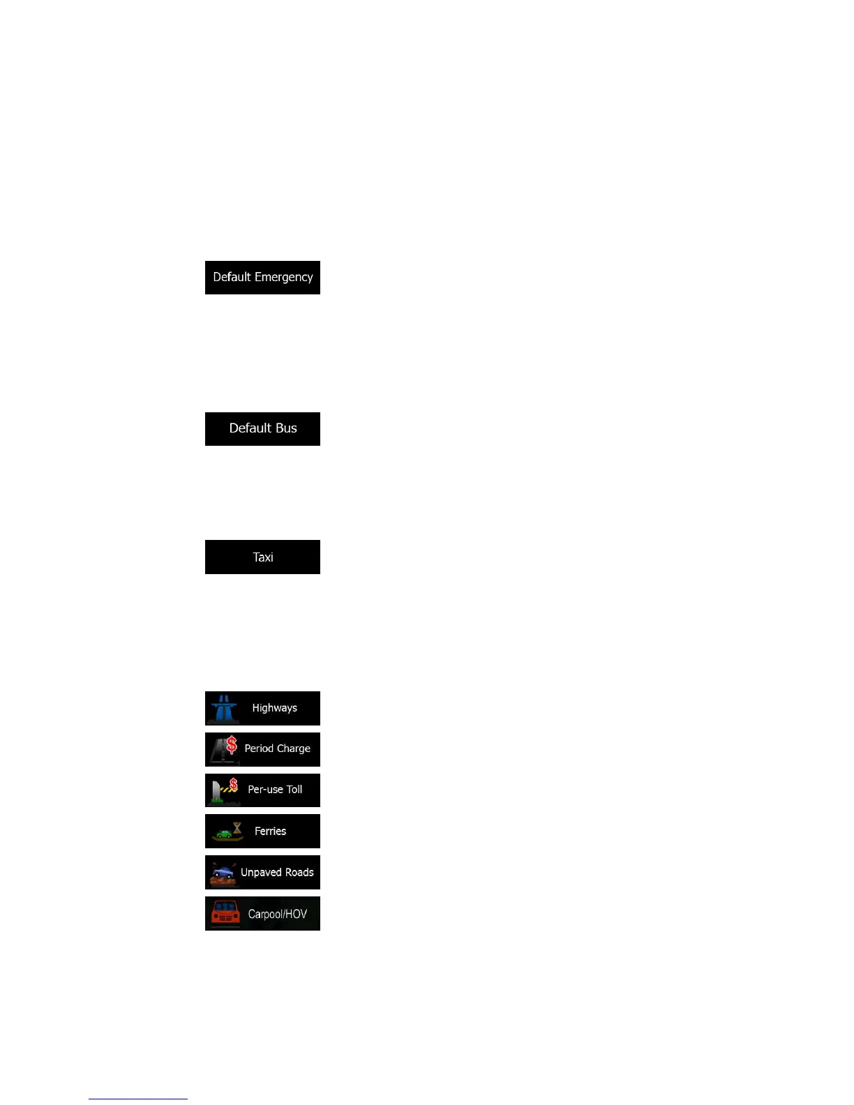 • Road types used or avoided in route calculation: