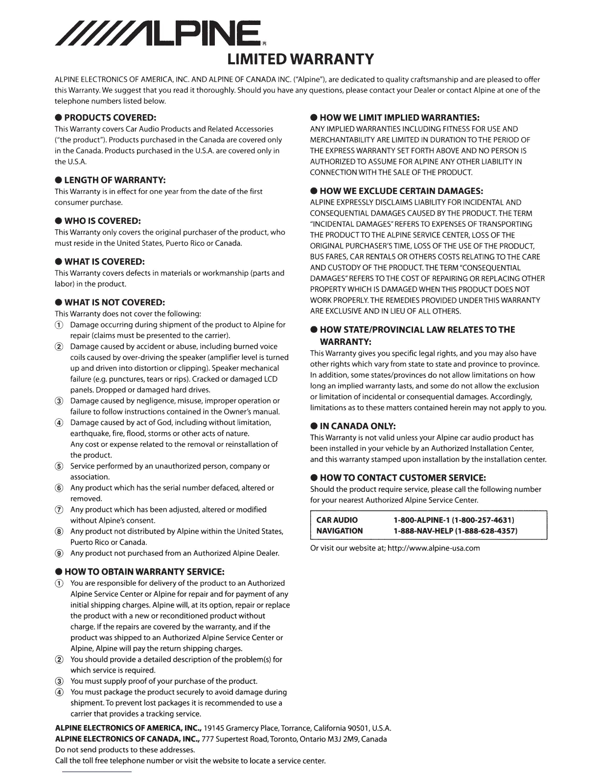 website at; http://www.alpine-usa.com