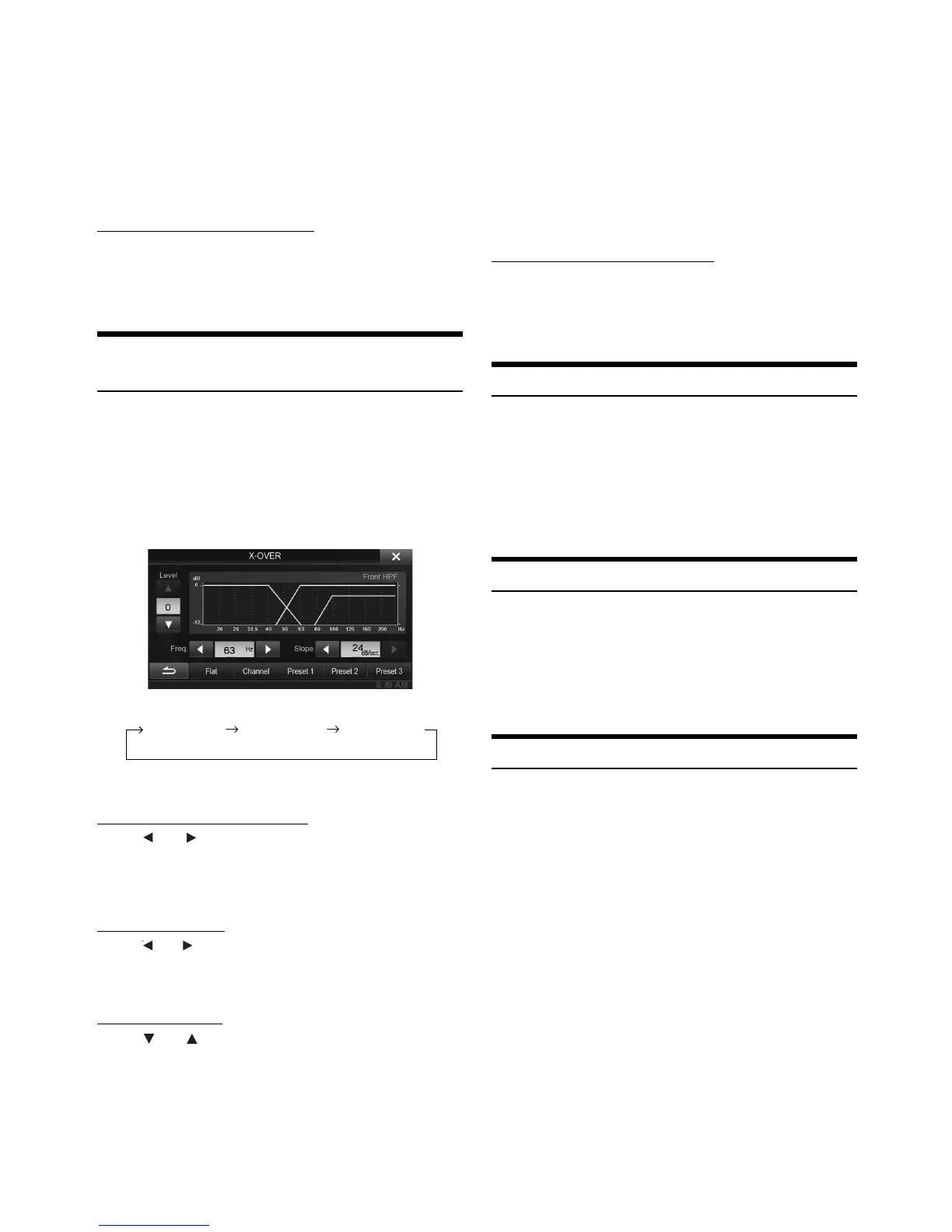 [X-OVER] is selected on the Sound setup menu in step 3. Refer to