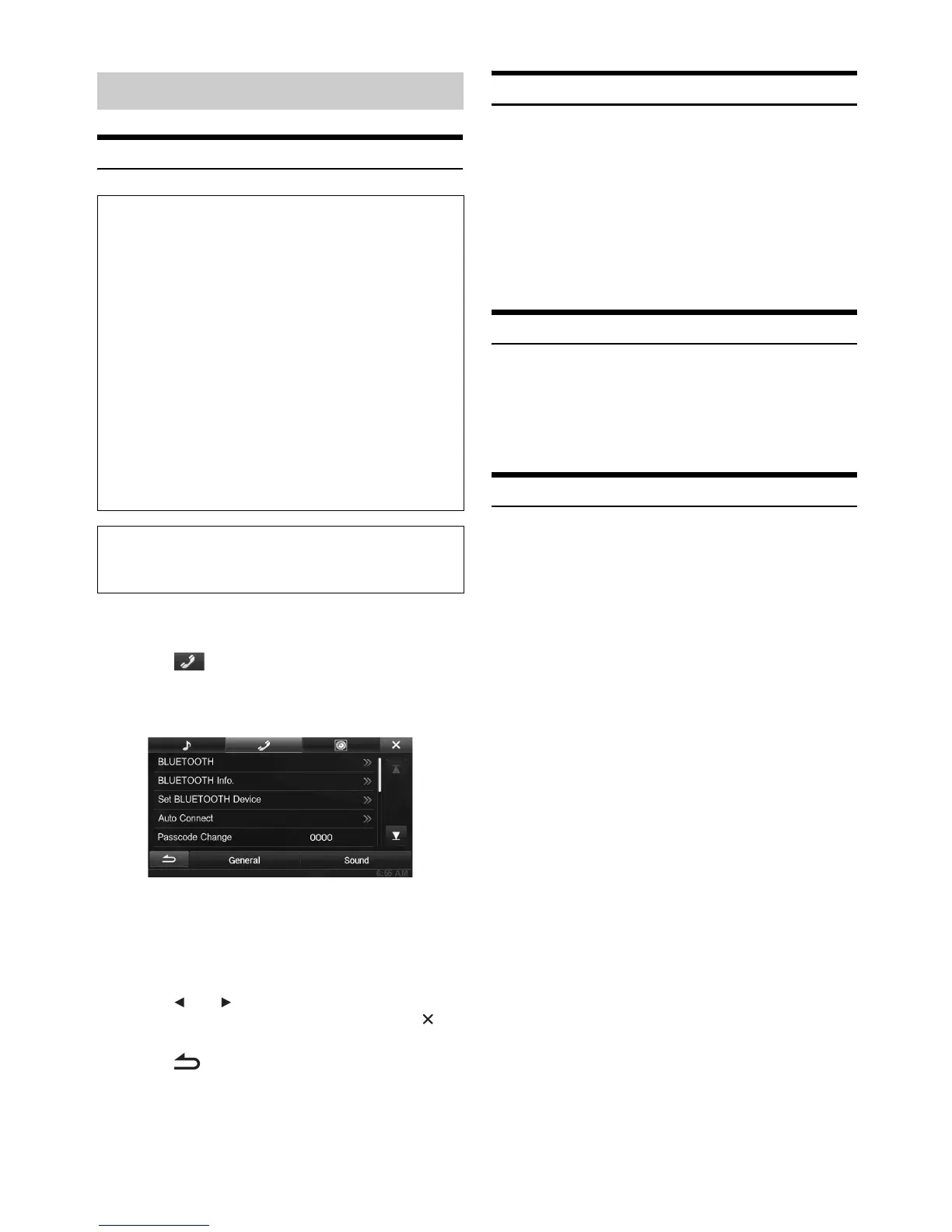 “Setting item” of BLUETOOTH Setup. Refer to each section for
