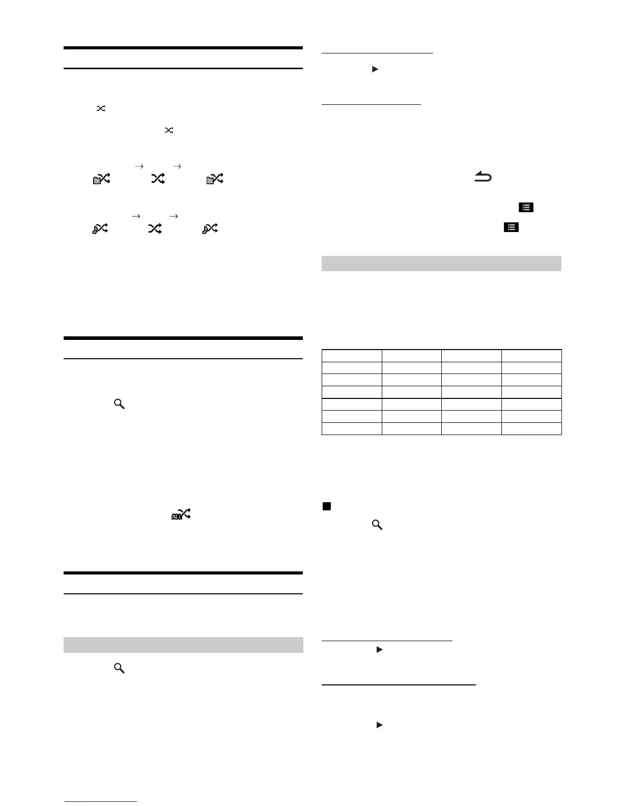• All songs in the USB memory are played back in random sequence.
