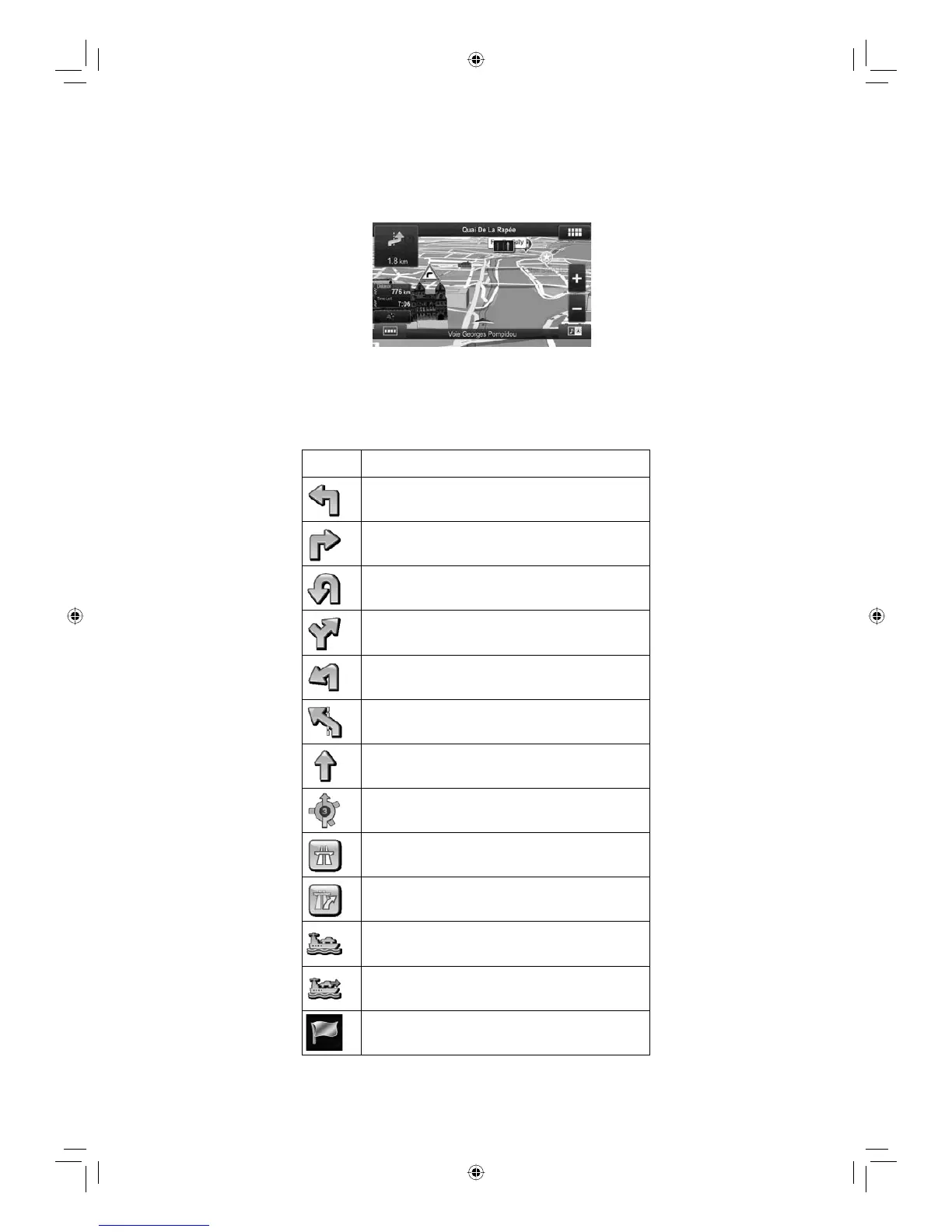 event (turn, roundabout, exiting motorway, etc.) and its distance from the current position are