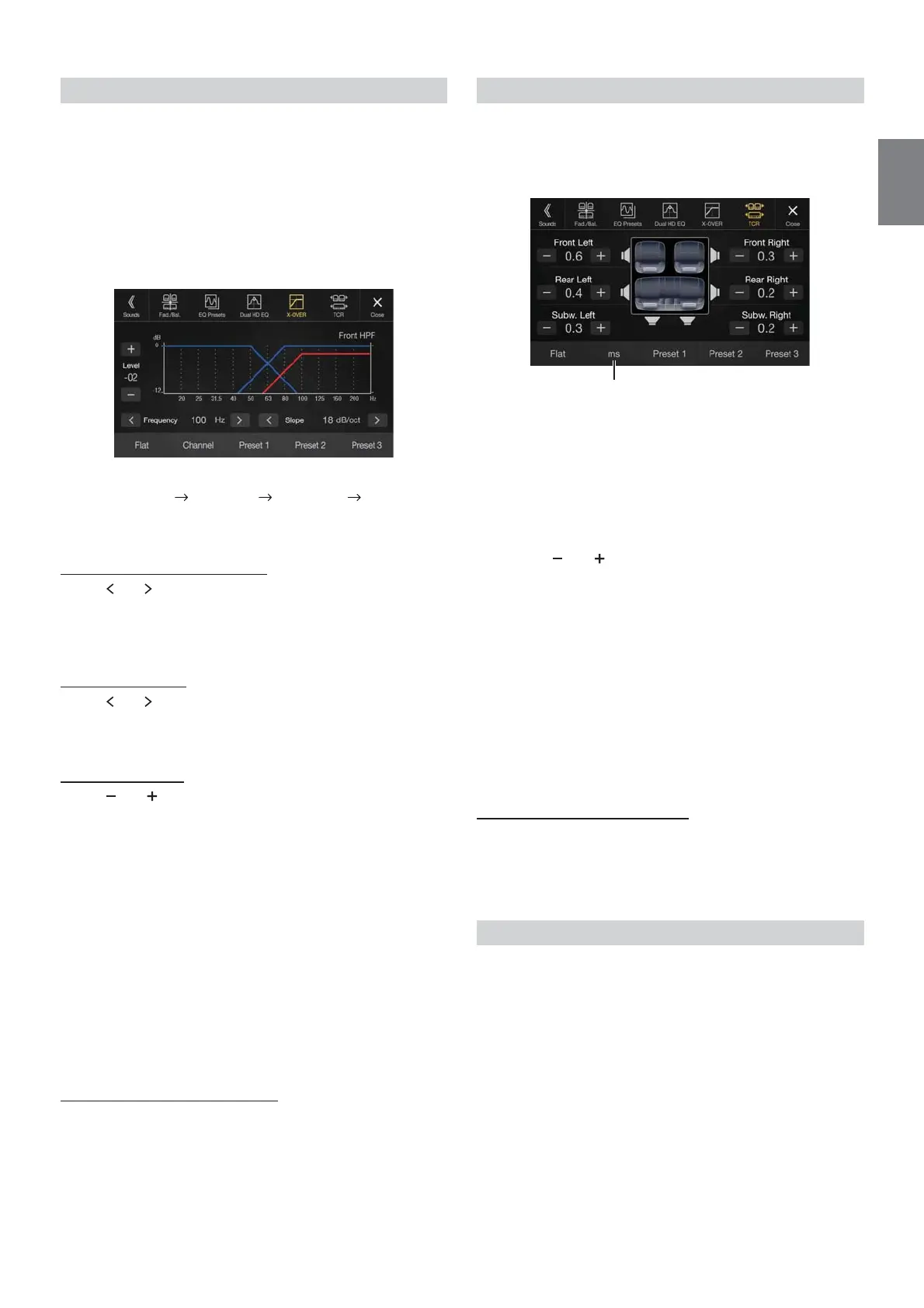 3 Tou ch [] or [] for each speaker to adjust the time or