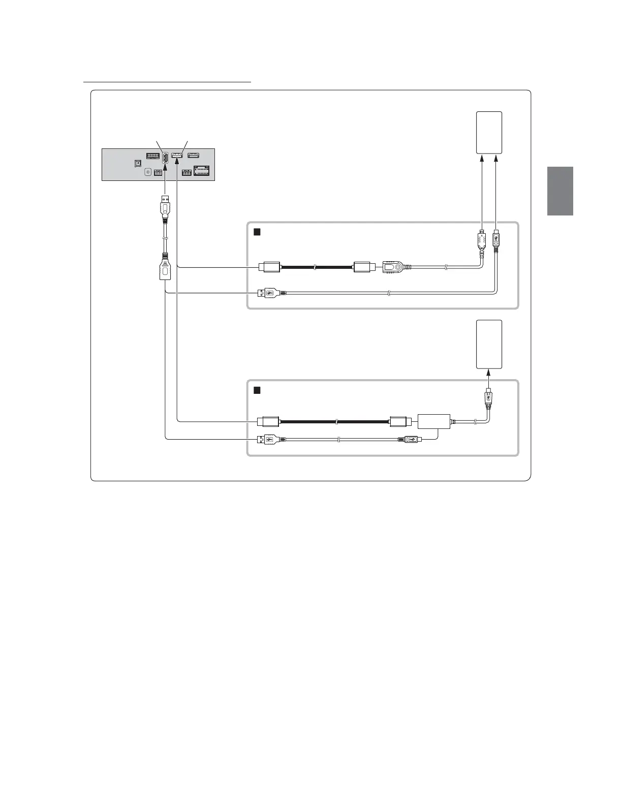 • Ein geeigneter Verbindungs- oder Adaptersatz für die Art des Anschlusses am anzuschließenden Gerät ist erforderlich.