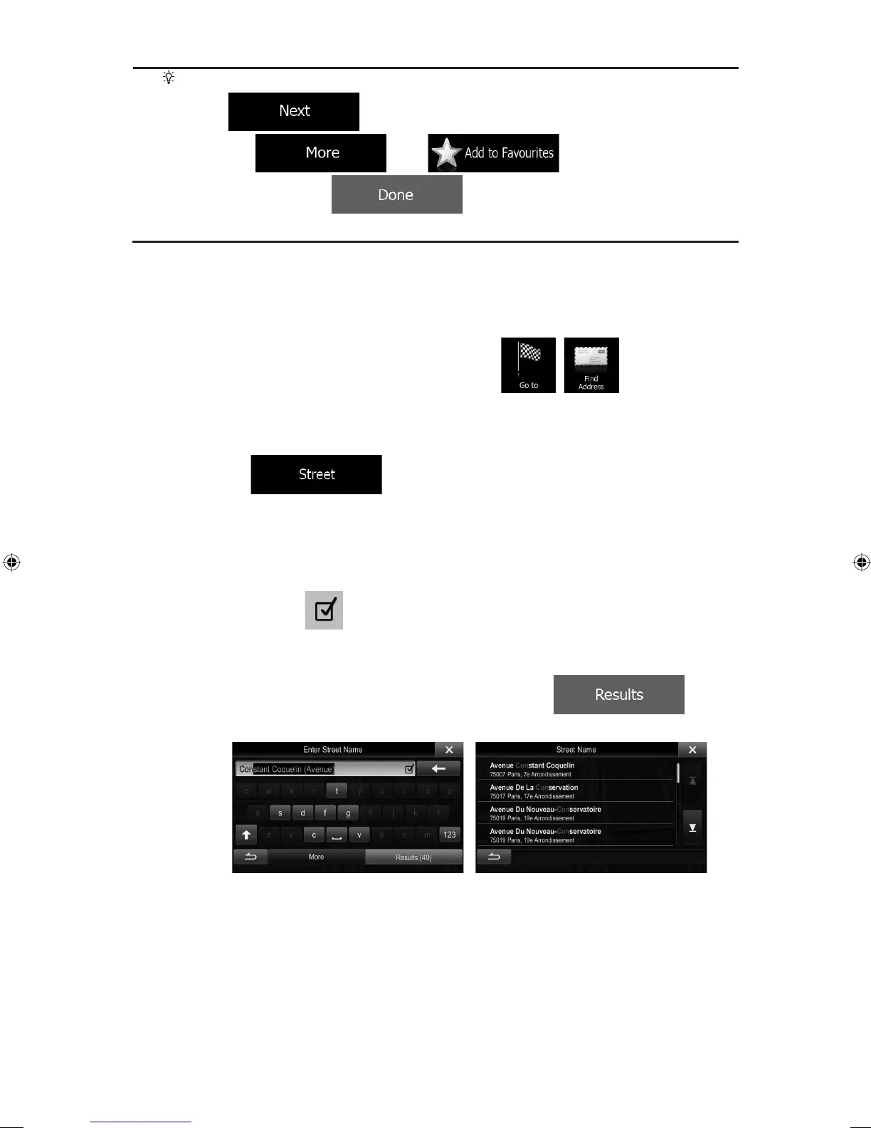 • The most likely street name is always shown in the input field. To accept