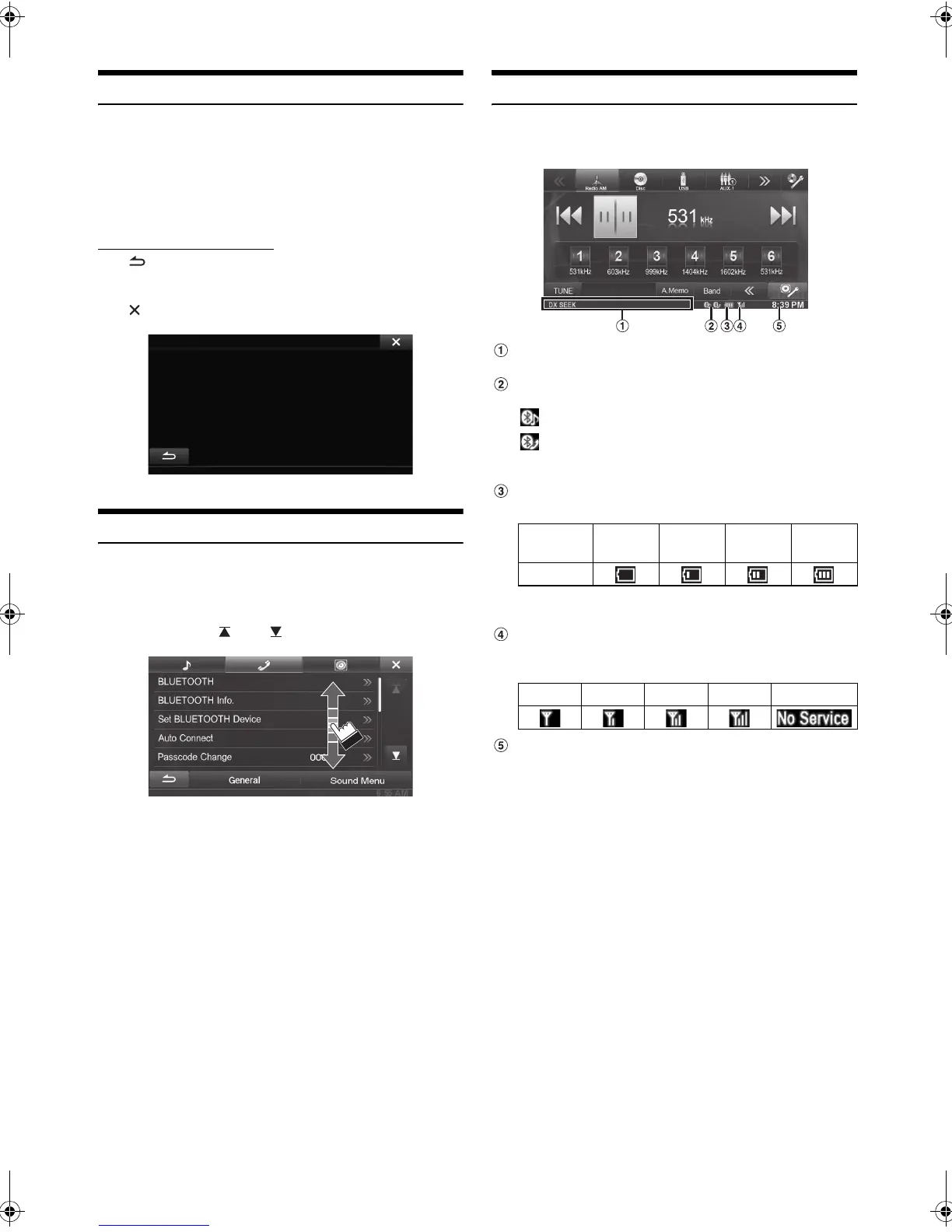 Displayed when BLUETOOTH setting is ON.