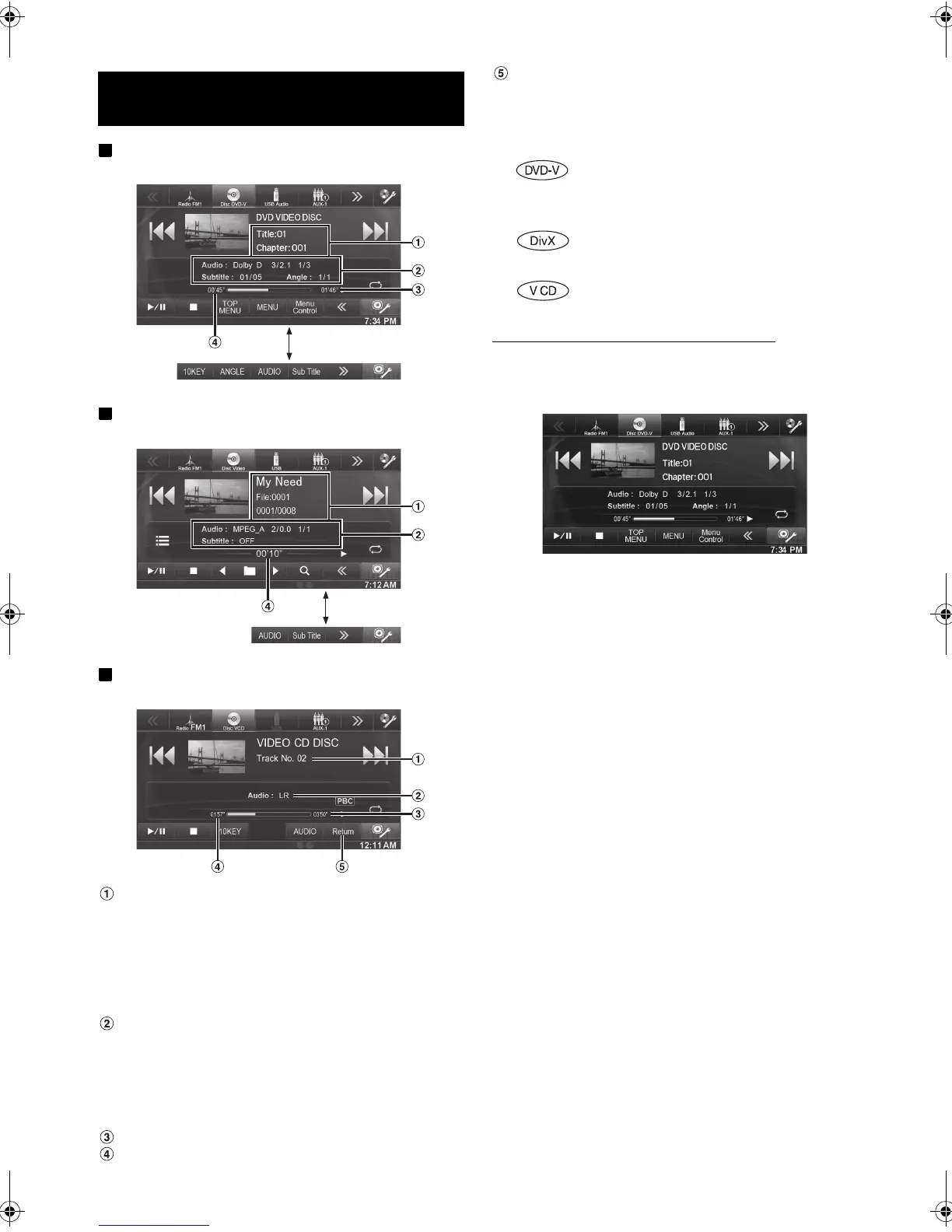 The DVD/Video CD operation screen display