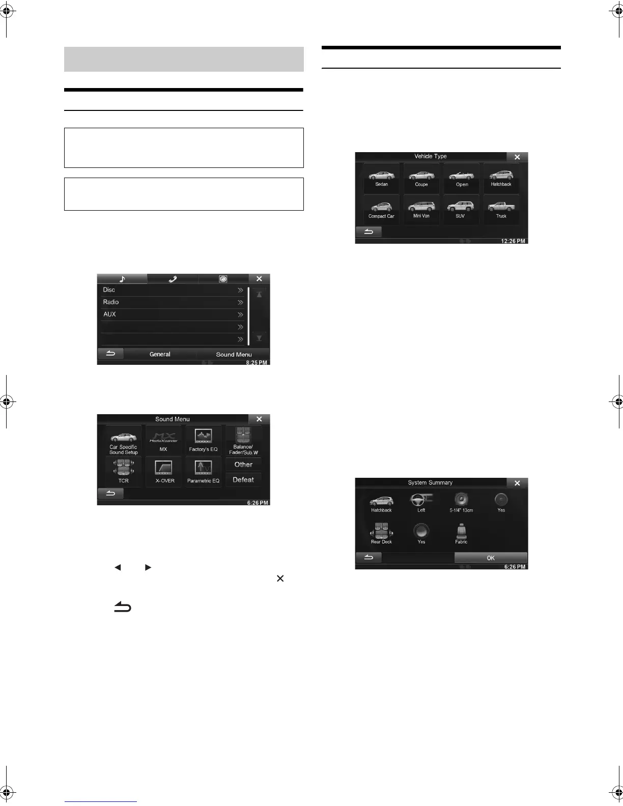 [Car Specific Sound Setup] is selected in the Sound setup menu in step