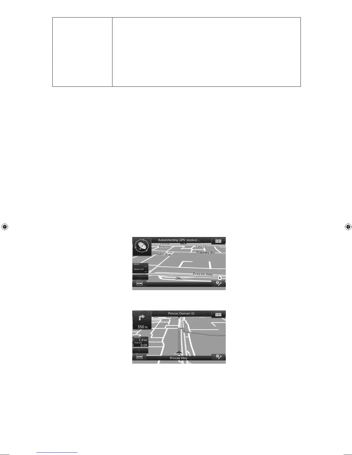 It shows the current position (the Vehimarker, a blue arrow by default), the recommended