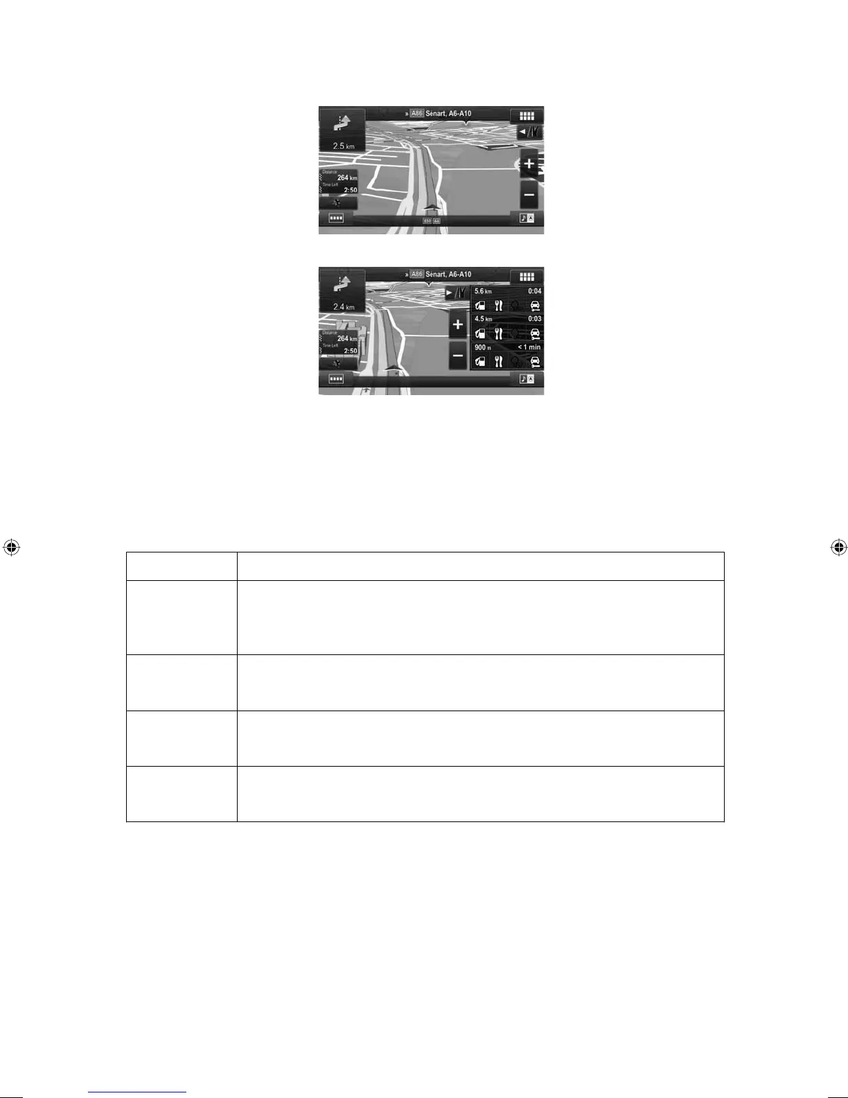 Tap this button to open a panel with the details of the next few exits or service stations.
