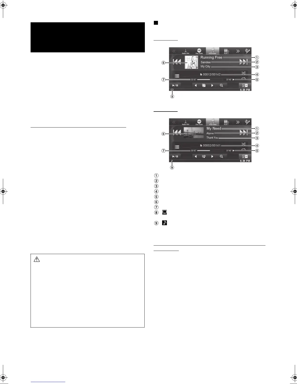 The iPod/iPhone operation screen is displayed.