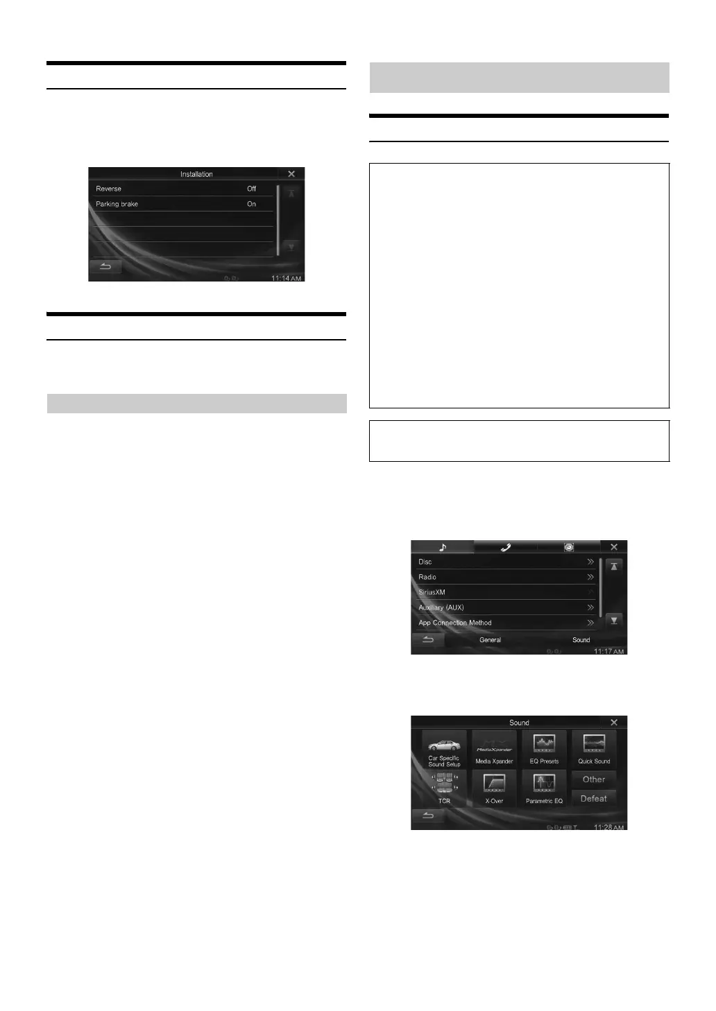 Setting items: Car Specific Sound Setup* / Media Xpander* /