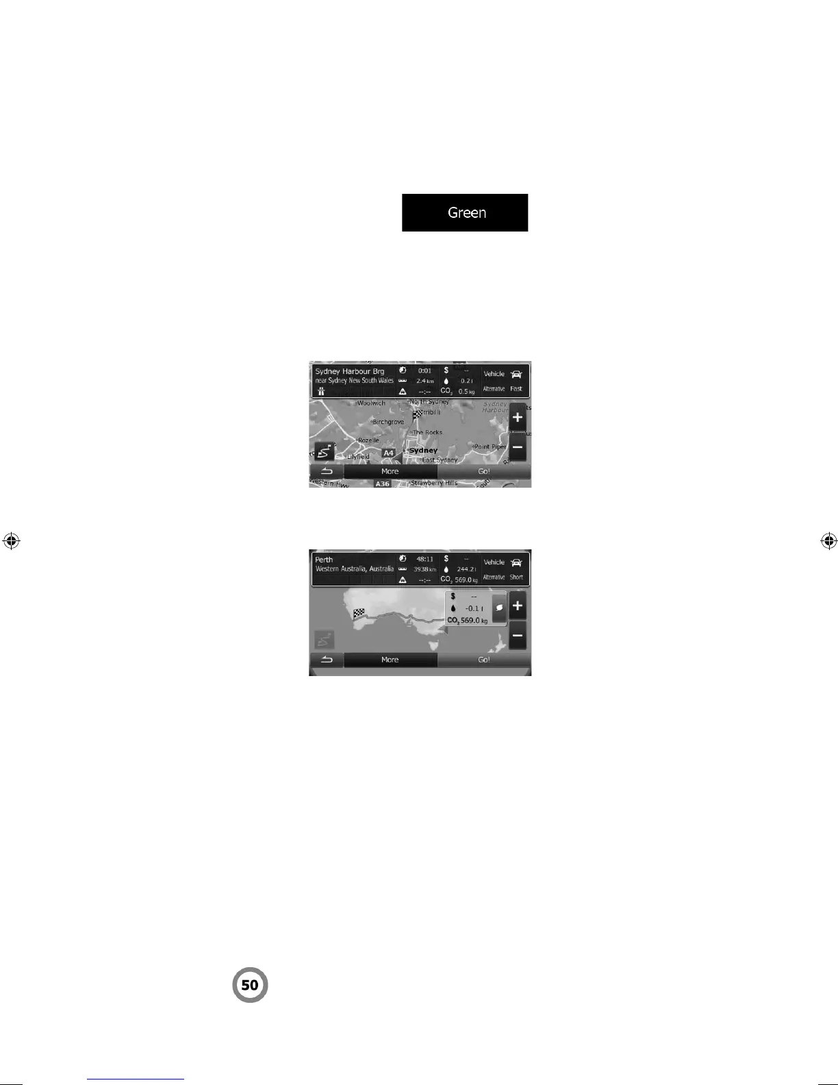 between your selected route and the Green route are also shown on this screen: