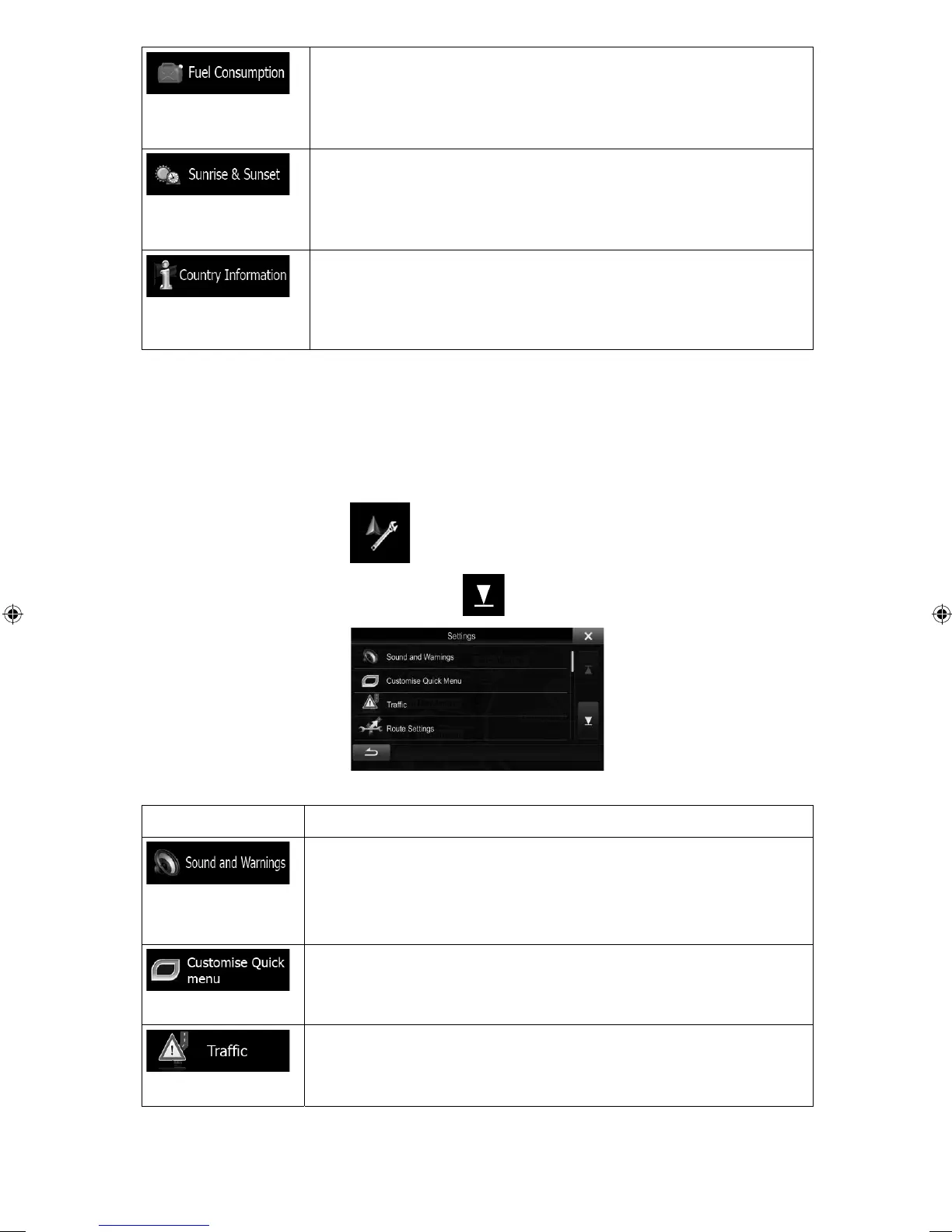 The content of the Quick menu (page 20) is fully customisable. Tap