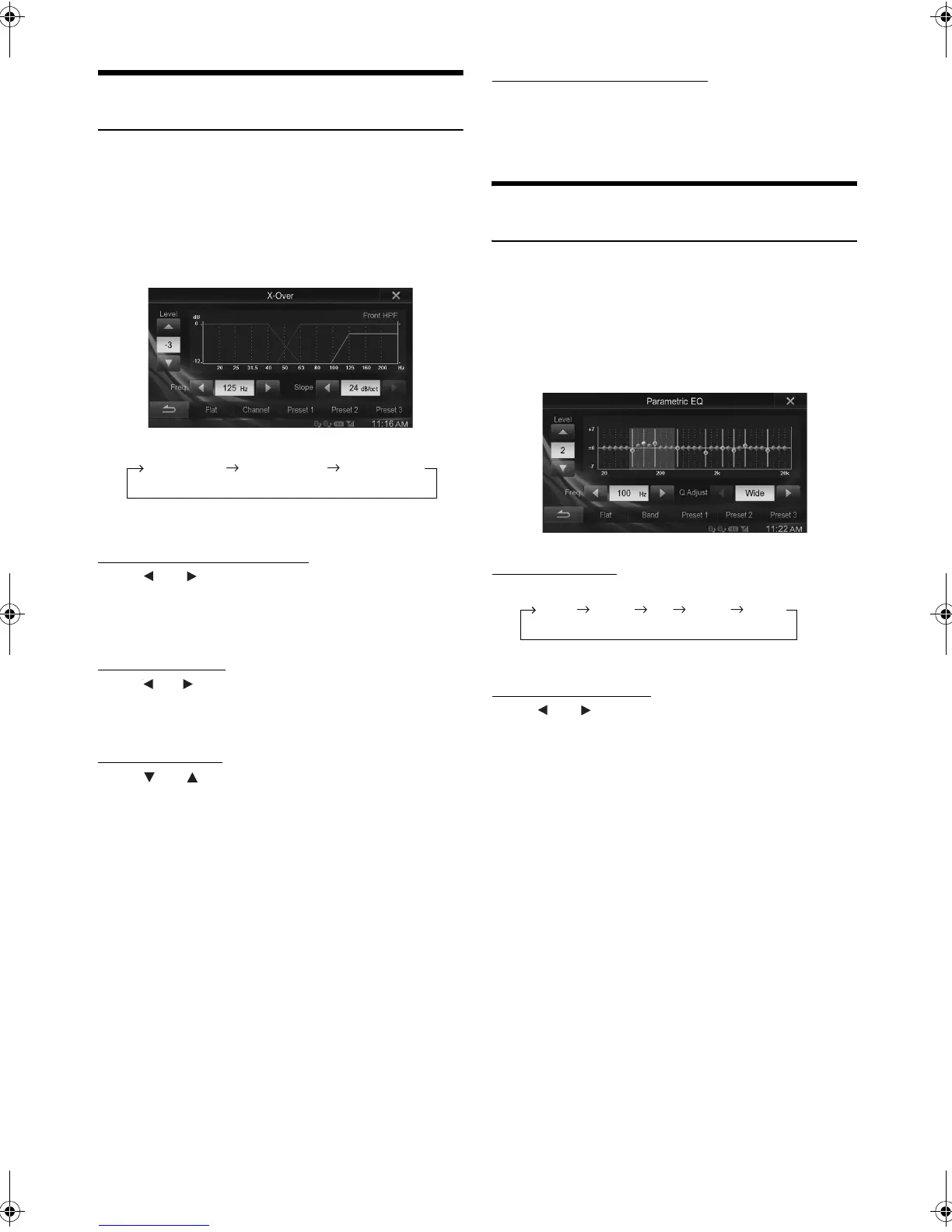 [X-Over] is selected on the Sound setup menu in step 3. Refer to