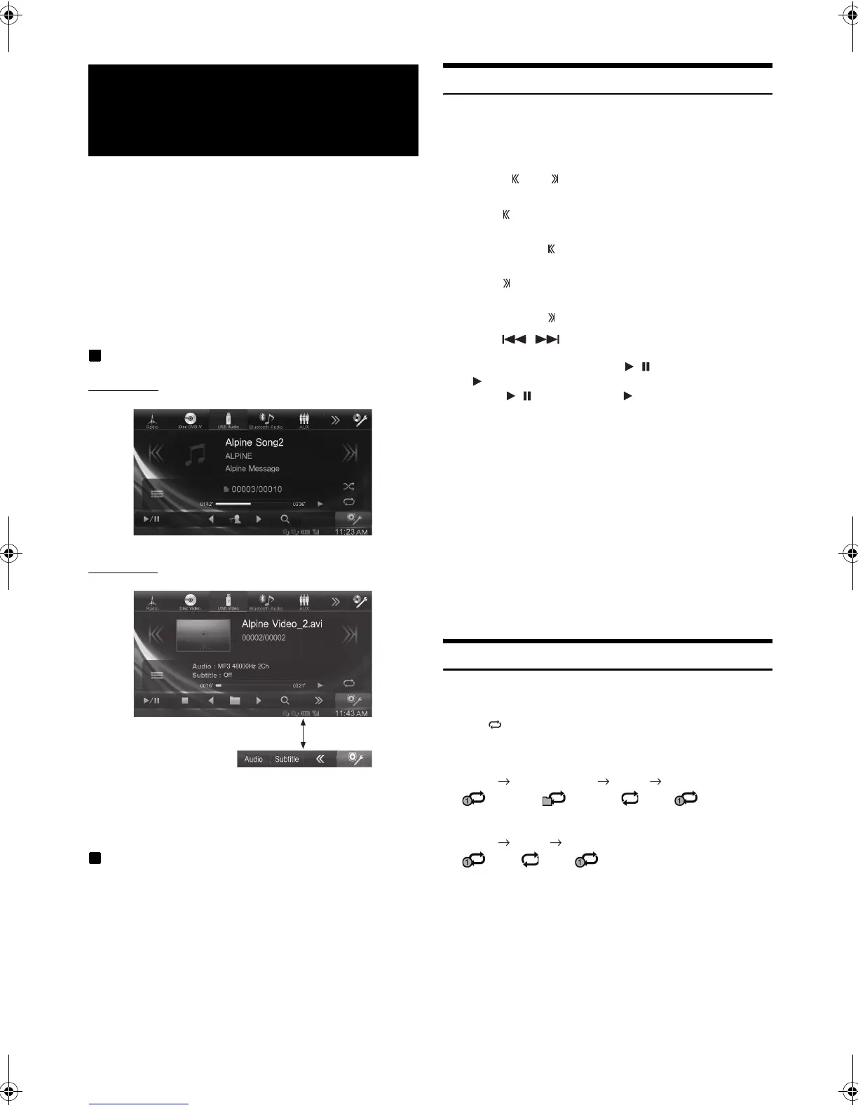 • Refer to “Display example for MP3/WMA/AAC main screen”