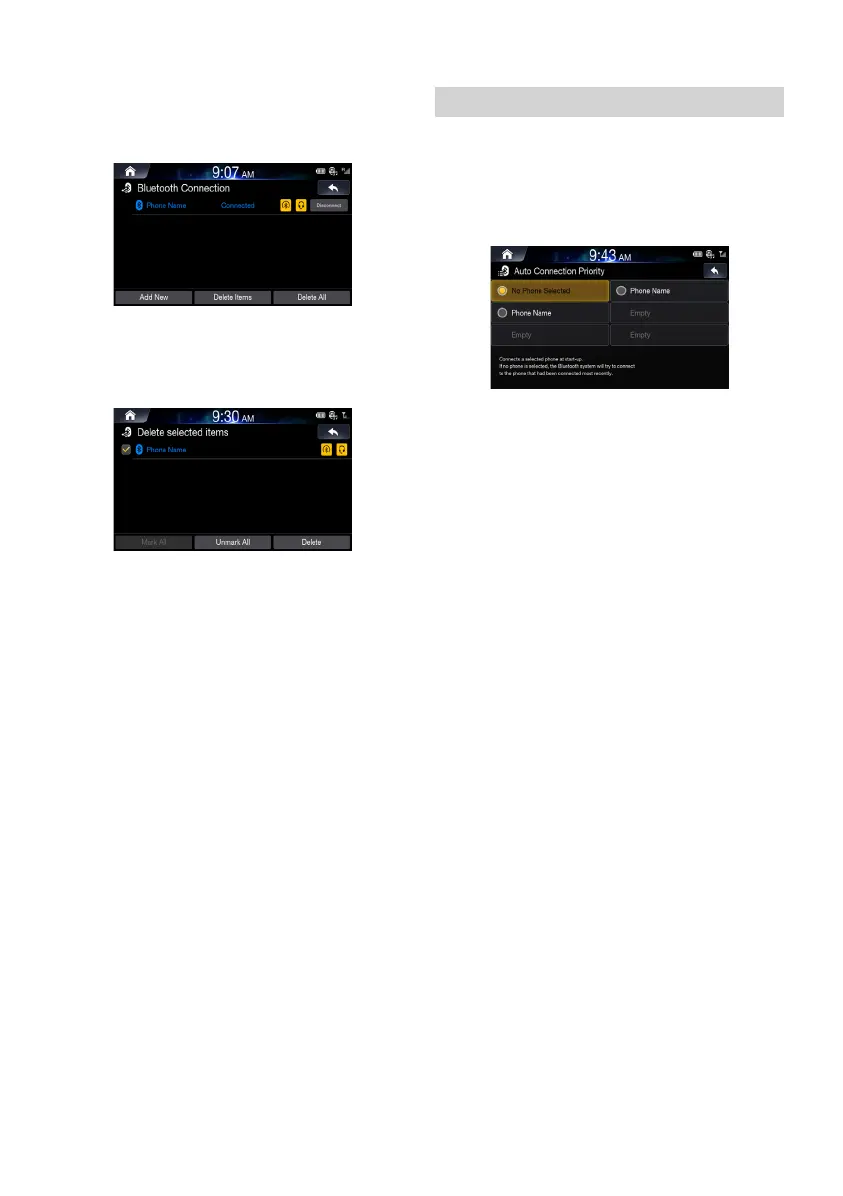 • A connected Bluetooth device can be deleted by pressing Yes