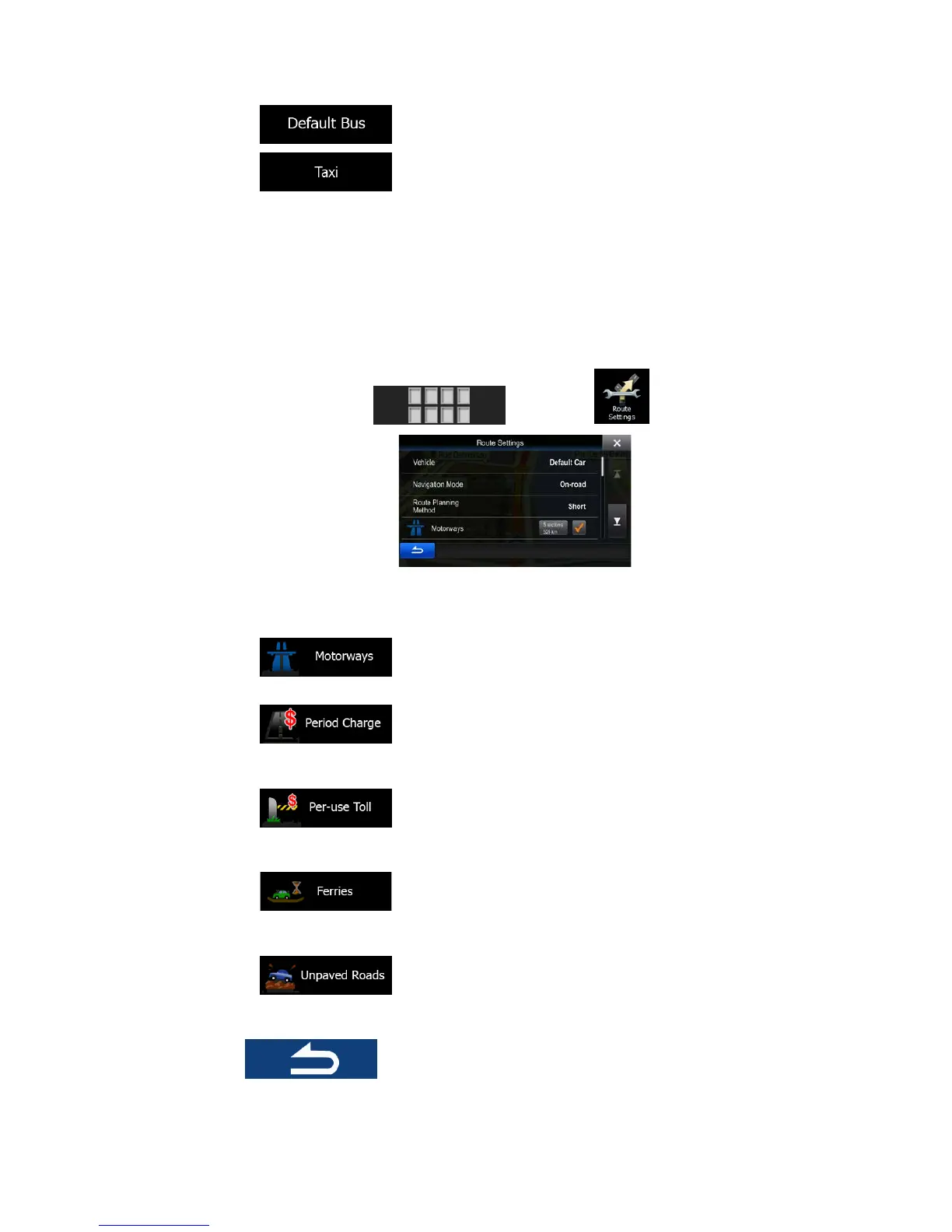 To recalculate the active route with different road type preferences, do as follows. These
