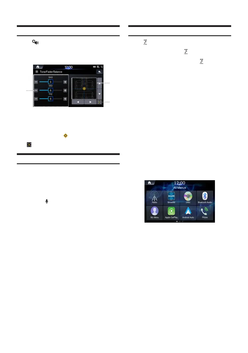 The Tone/Fader/Balance settings screen will be displayed.