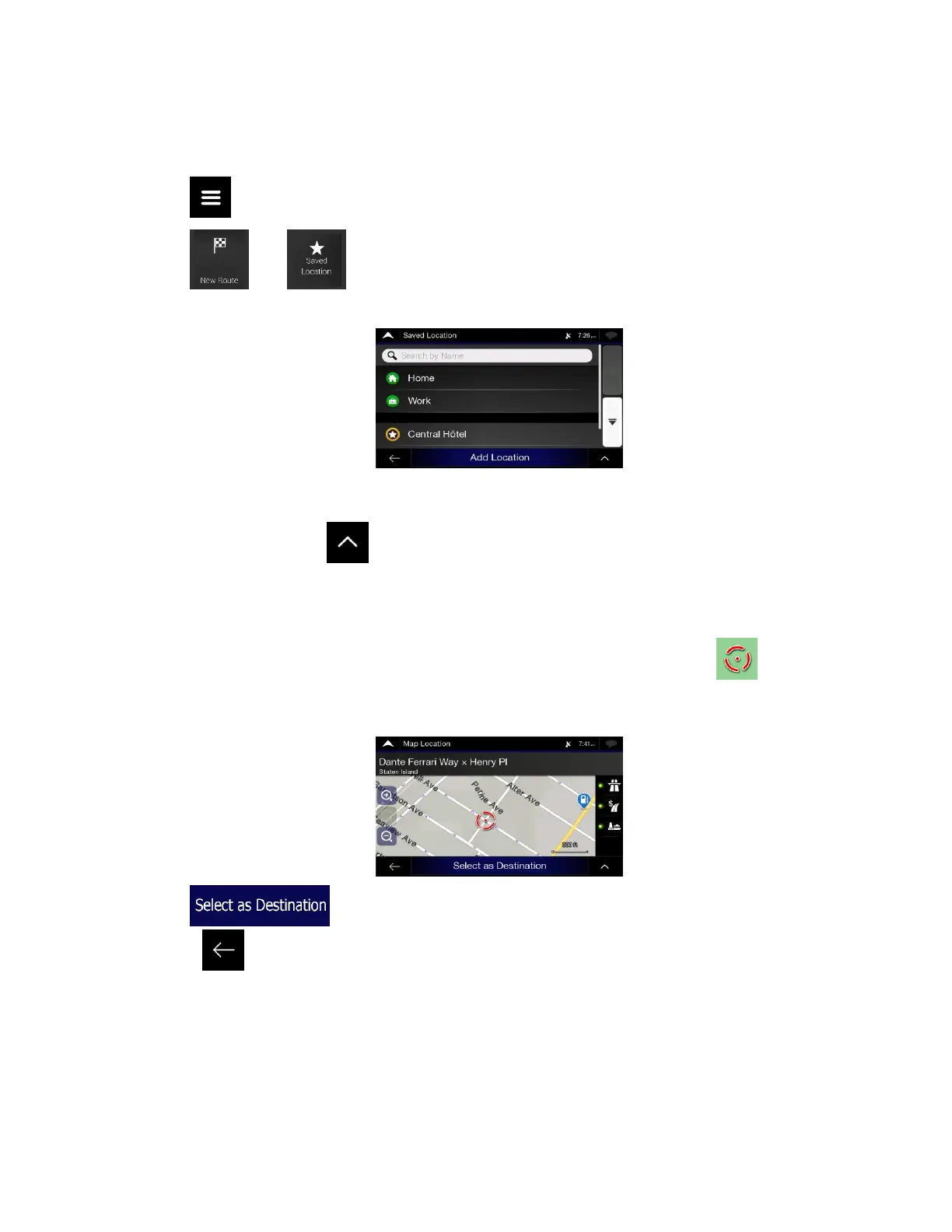6. After you have selected a saved location as the destination, a full screen map appears with the