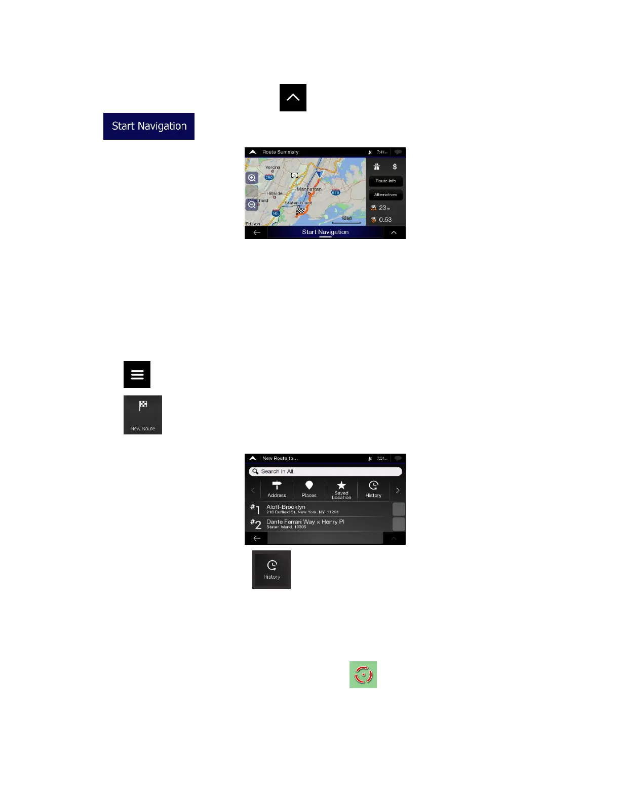 2. Tap . Two of the Smart History Items are displayed in the New Route to... screen for easy