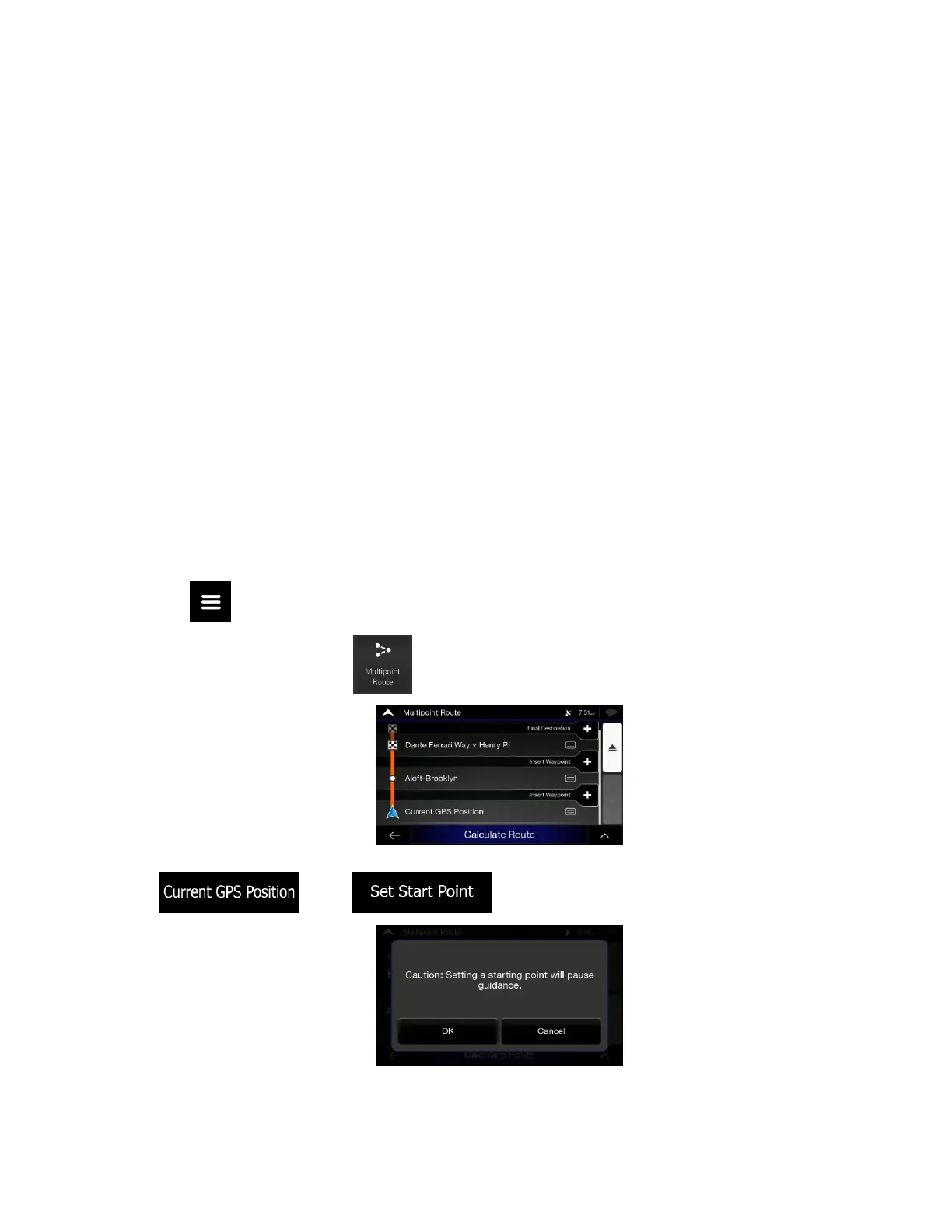 3. The first line from the bottom is the start of the route, normally the current GPS position. Tap