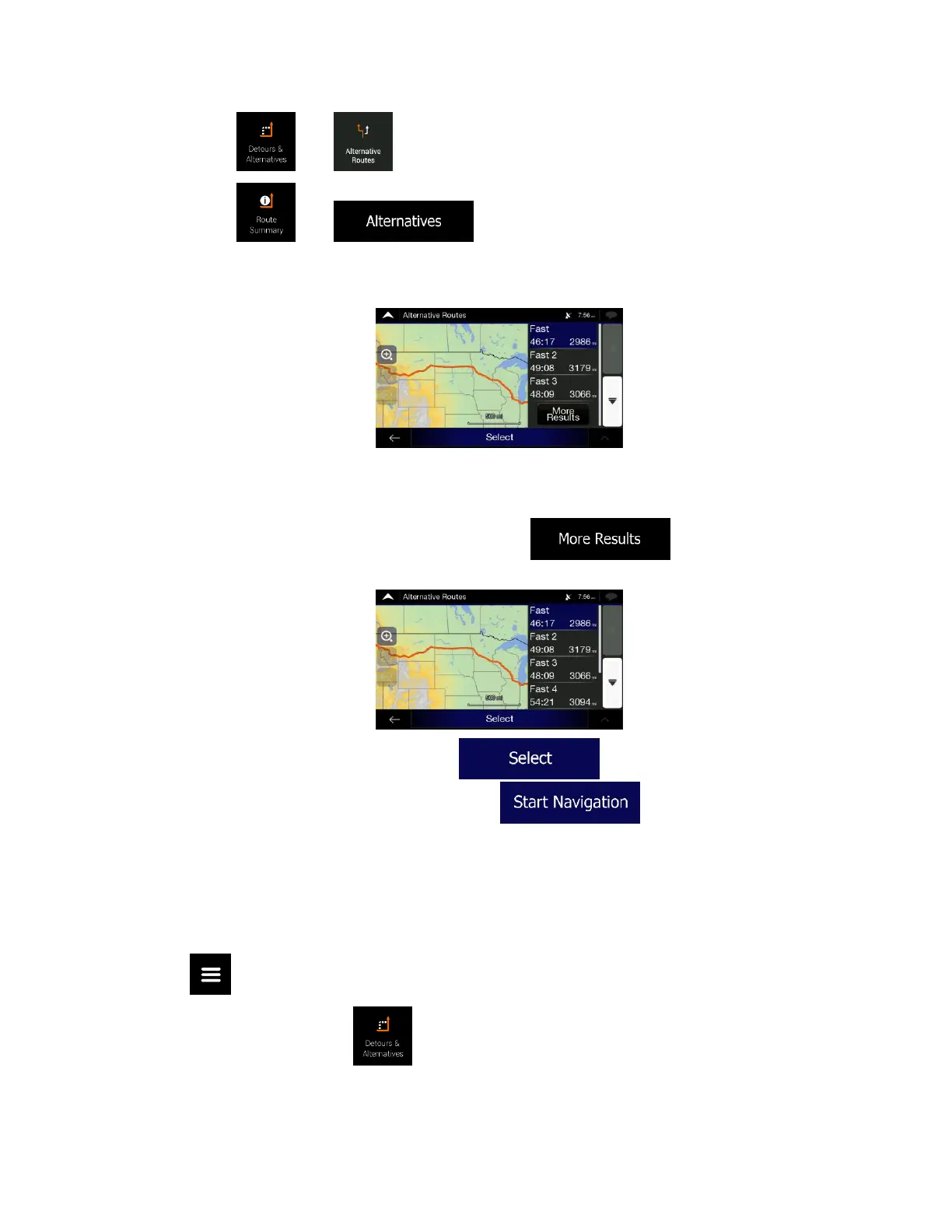 5. Select one of the route alternatives and tap to return to the previous screen.