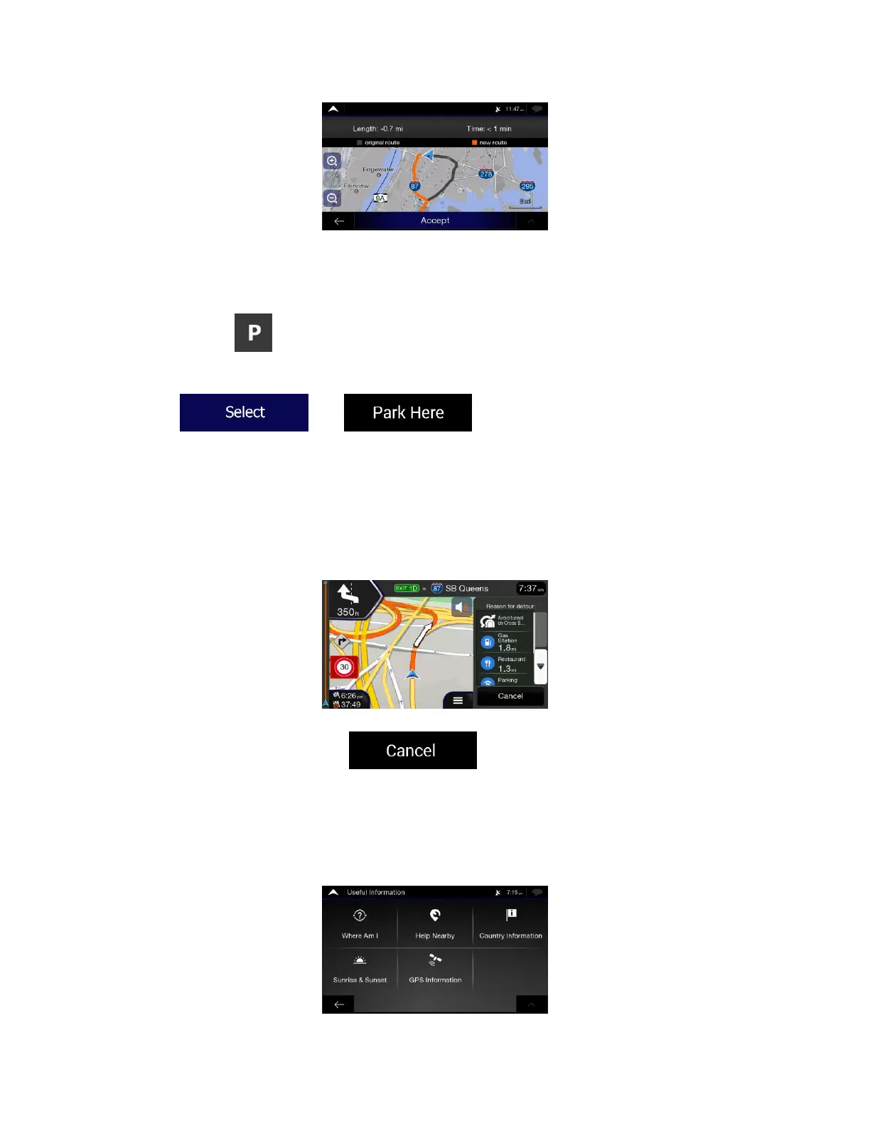 a detour. By tapping , you can open a top-down map with the recommended parking Places around