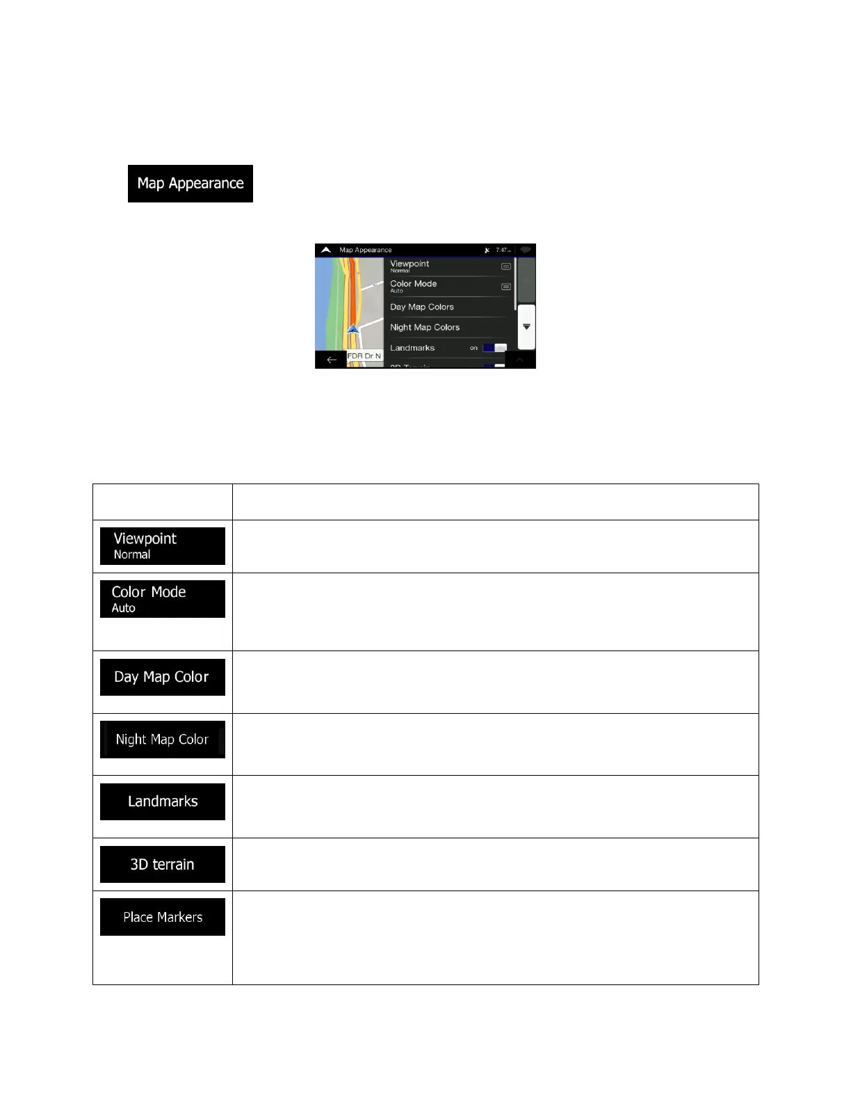 the list for both daytime and nighttime use, show or hide 3D buildings, landmarks, and manage your
