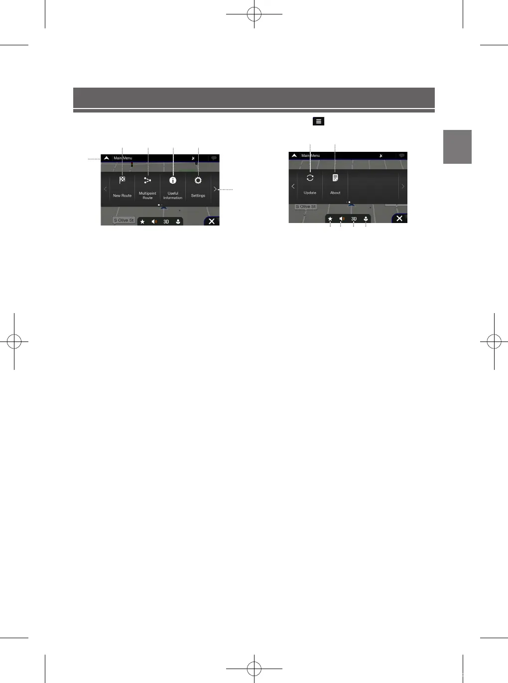 To access the Navigation Menu, touch on the icon on the right lower corner of the map screen.