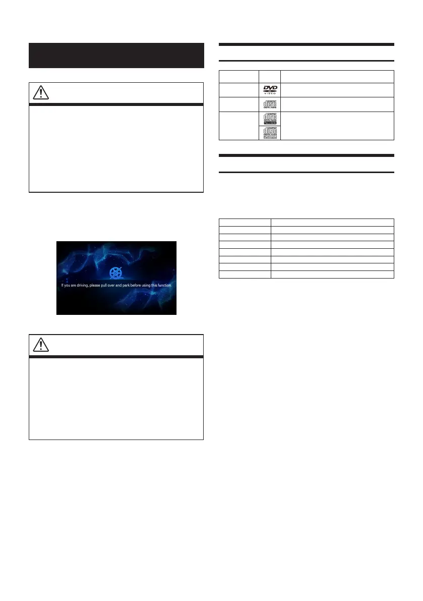 • It is dangerous for the driver to watch the DVD/Disc, Video/