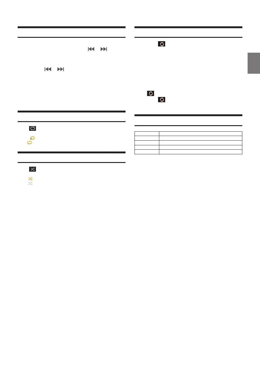 • Off : turns the shuffle feature off.