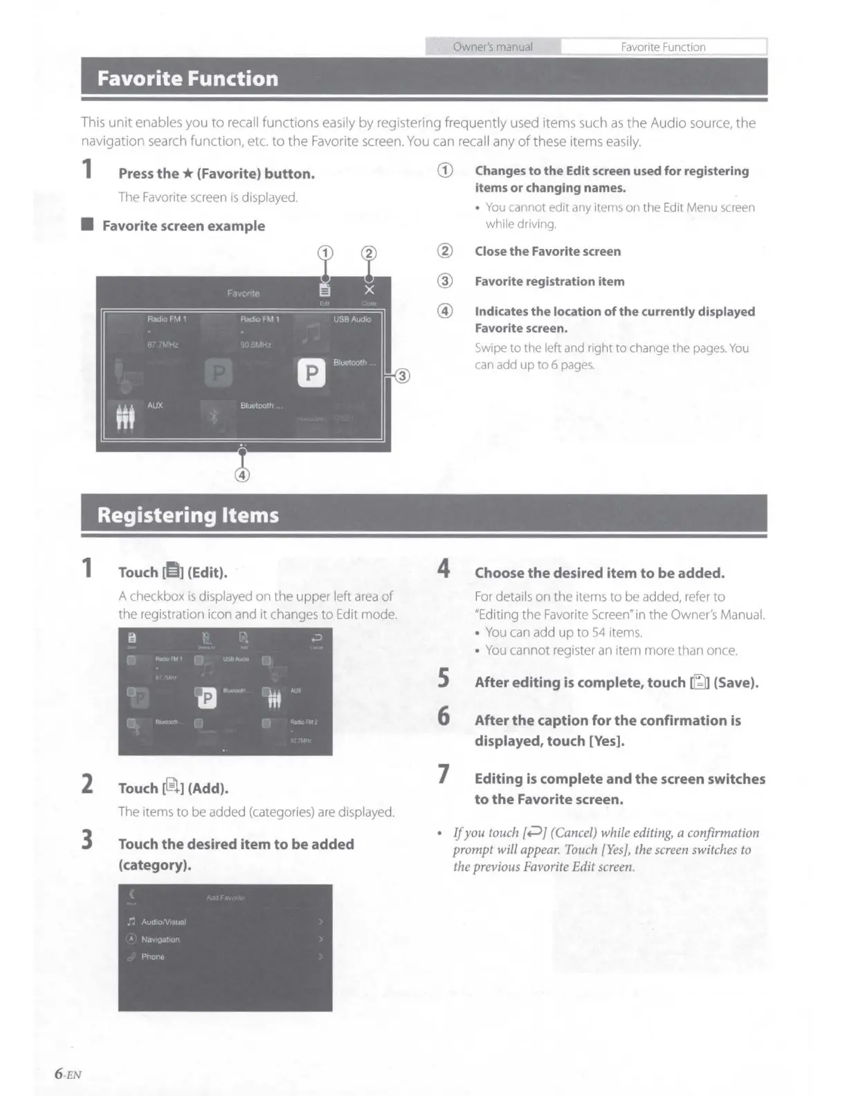 Alpine INE-W987HD - Favorite Function; Registering Items
