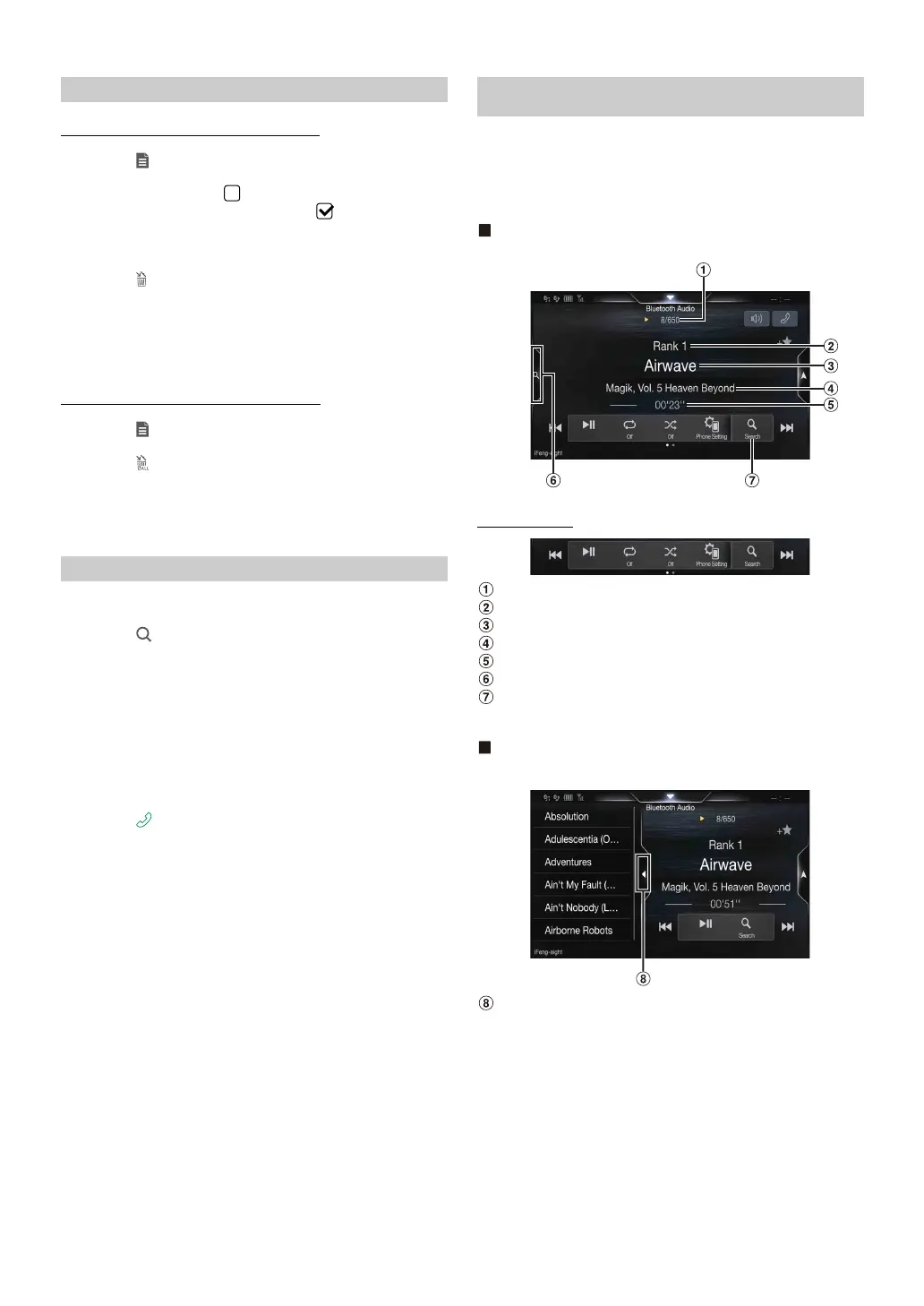 • The displayed onscreen buttons may differ depending on the AVRCP