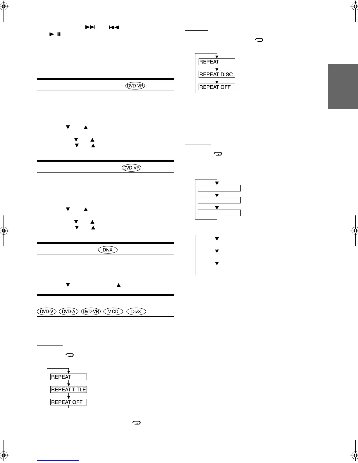 • For some discs it is not possible to switch the repeat mode.