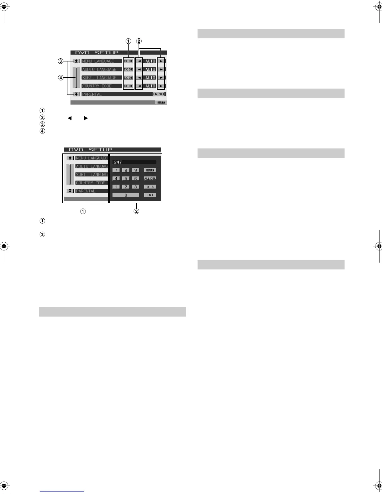 Display example for DVD setup screen