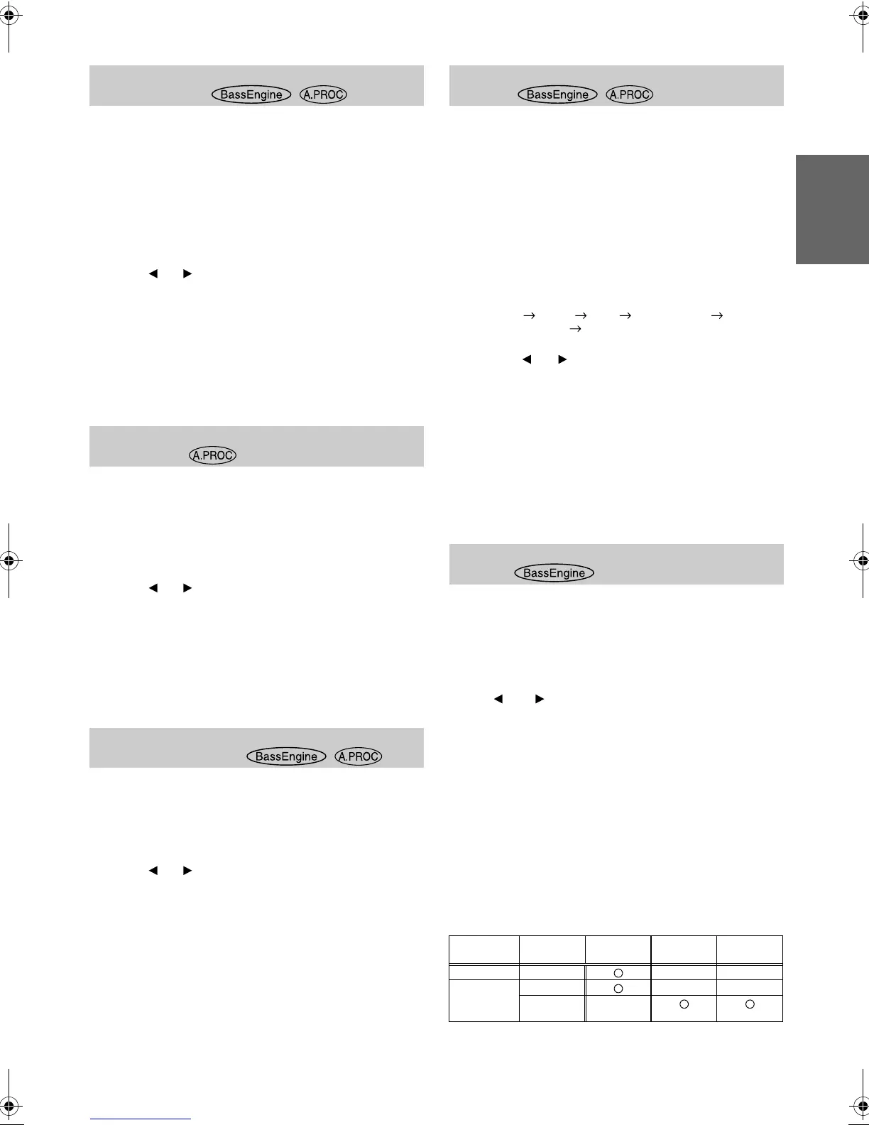 • When this setting is mode using Bass Engine, perform this with no