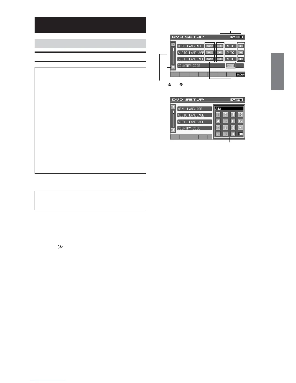 Display example for DVD setup screen