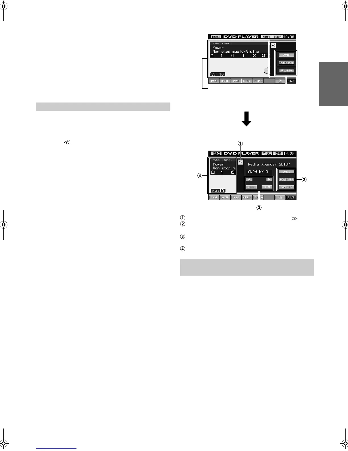 In the main source display, shortcuts for set up of Media Xpander, Bass