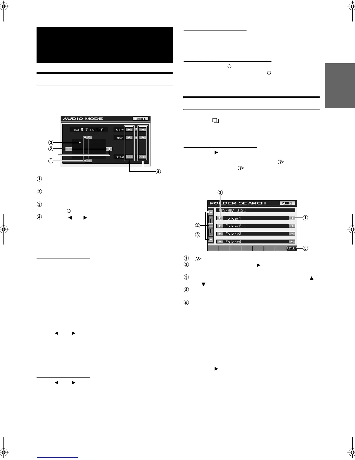 • A folder list is displayed only during MP3/WMA playback when the