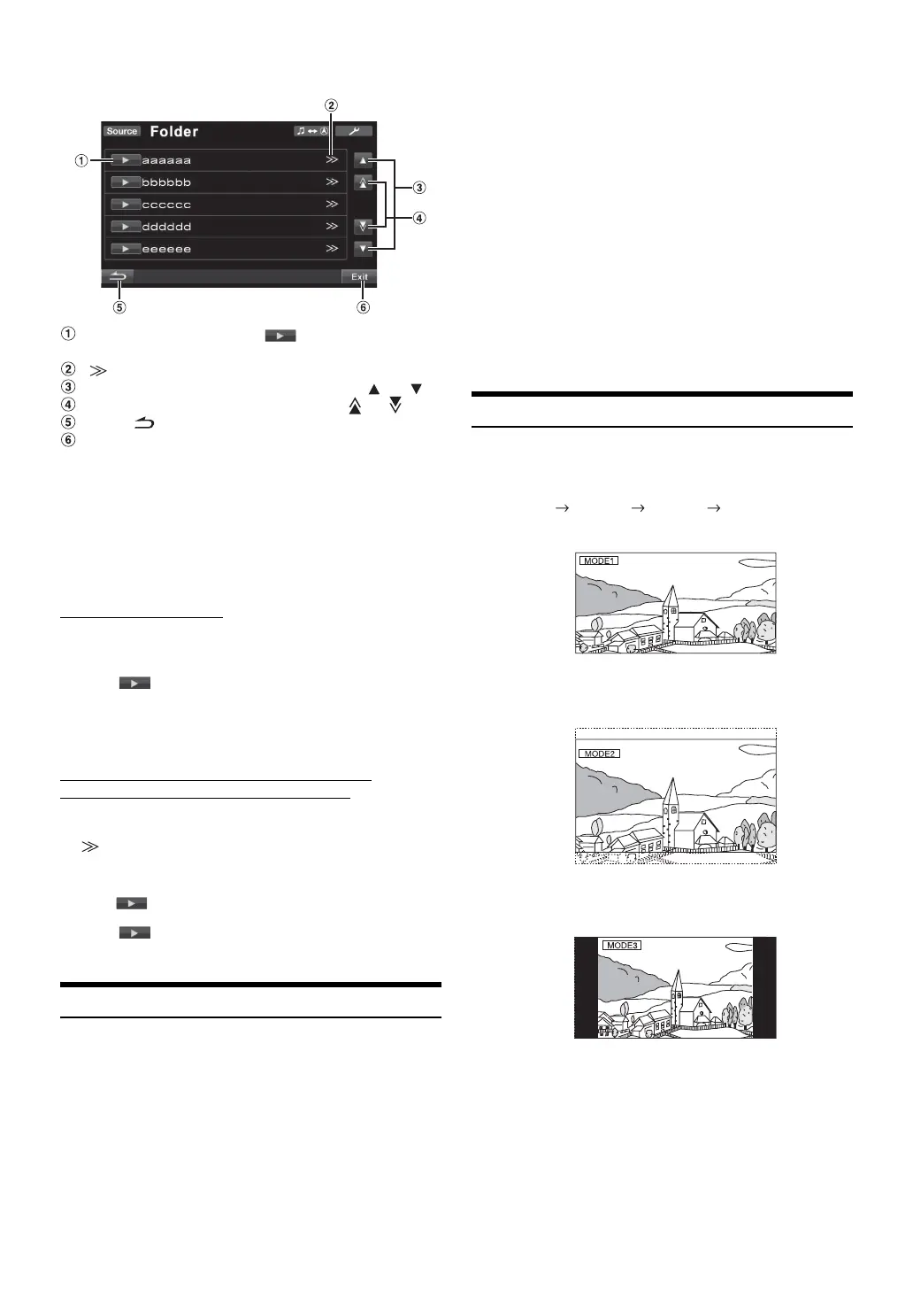 • A folder list is displayed only during MP3/WMA/AAC playback when