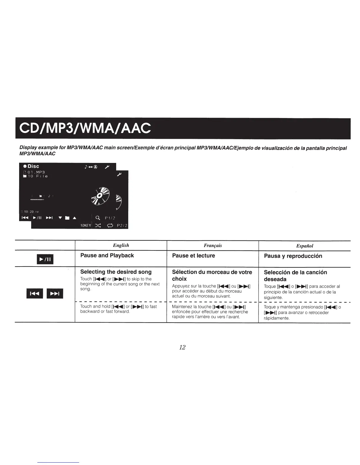 MP3/WMA/AAC main screen/Exemple d'ecran
